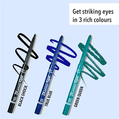 Blue Heaven 2X Intense Kajal Combo Green Queen And True Blue | With Soothing Aloe Vera | Upto 24Hr Stay | Long Lasting And Smudge Proof Pencil | Matte Finish| Pack Of 2 | 0.30G Each, Multicolor
