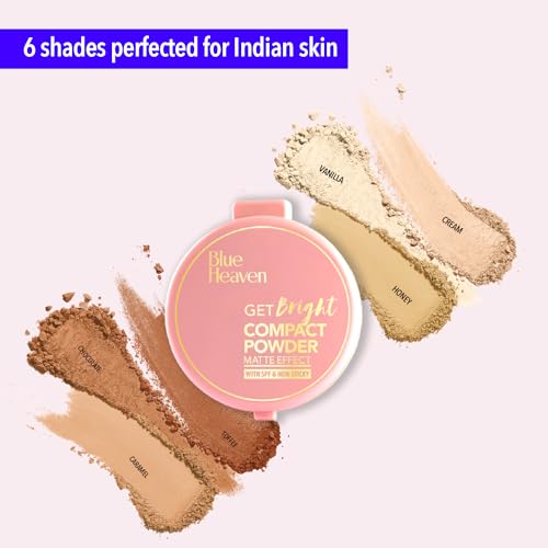 Blue Heaven Get Bright All Skin Compact Powder For Women With Spf Sun Protection, Non Sticky, Oil Free, Matte Finish Light Weight Formula, Vanilla,16 Grams