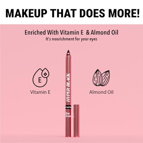 Intense Hyper Black Pigmentation :-This Blue Heaven Kajal gives you deep, jet-black color that enhances your eyes with bold definition. Smudge-Proof & Waterproof :-This Kajal pencil black waterproof is sweat, humidity, and water-resistant, ensuring your eye makeup stays flawless all day long. Blue Heaven Kajal black is made with high-performance formula that stays put for up to 24 hours without fading or smudging. One Stroke Application & Smooth Glide :- The gel based formulae of this black kajal is a buttery soft texture that effortlessly glides onto the eyes in a single stroke without tugging or pulling. Provides intense color payoff with a creamy, blendable finish that feels lightweight and comfortable on the eyes. Infused with Vitamin E & Almond Oil :- This kajal for women waterproof made with goodness of Vitamin E and Almond oil that helps to nourish and protect the delicate eye area, preventing dryness and irritation.