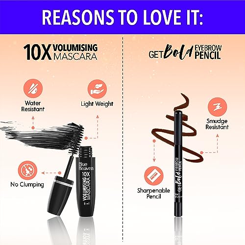 The Saj Dhaj Makeup set is a carefully curated assortment of makeup essentials, offering a wide range of products to create mesmerizing festive looks. This make up kit for women comes with set of 10 products which includes Instant glow matte compact powder, Get matte Lipstick, deep eyeliner, eyebrow pencil, deep black kajal, non transfer matte lip color, strawberry lip bam, mascara, liquid foundation and one scrunchie. This makeup kits and combos are made with high quality formulas, all products in this kit are made with premium ingredients, ensuring long-lasting wear, vibrant colors, and a smooth, flawless finish. Blue heaven makeup kit included products that are suitable for various skin tones and types, ensuring versatility and inclusivity. Gifts for women - Whether you're treating yourself or surprising a loved one, this makeup kit makes an excellent gift for makeup enthusiasts and beauty lovers.