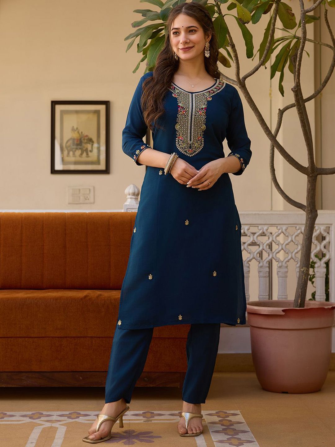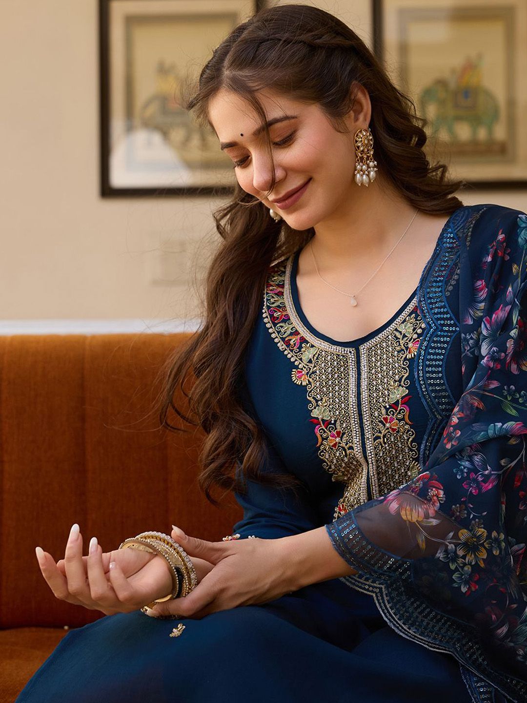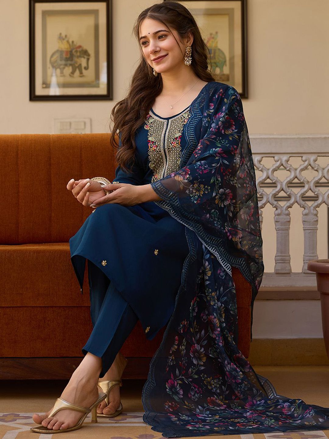 Buy this stylish BlueRang Floral Embroidered Beads and Stones Chanderi Silk Kurta With Trouser & Dupatta at Marincart Nepal. This product offers great quality and value. Perfect for those looking for the latest trends in fashion. Get yours now at unbeatable prices.