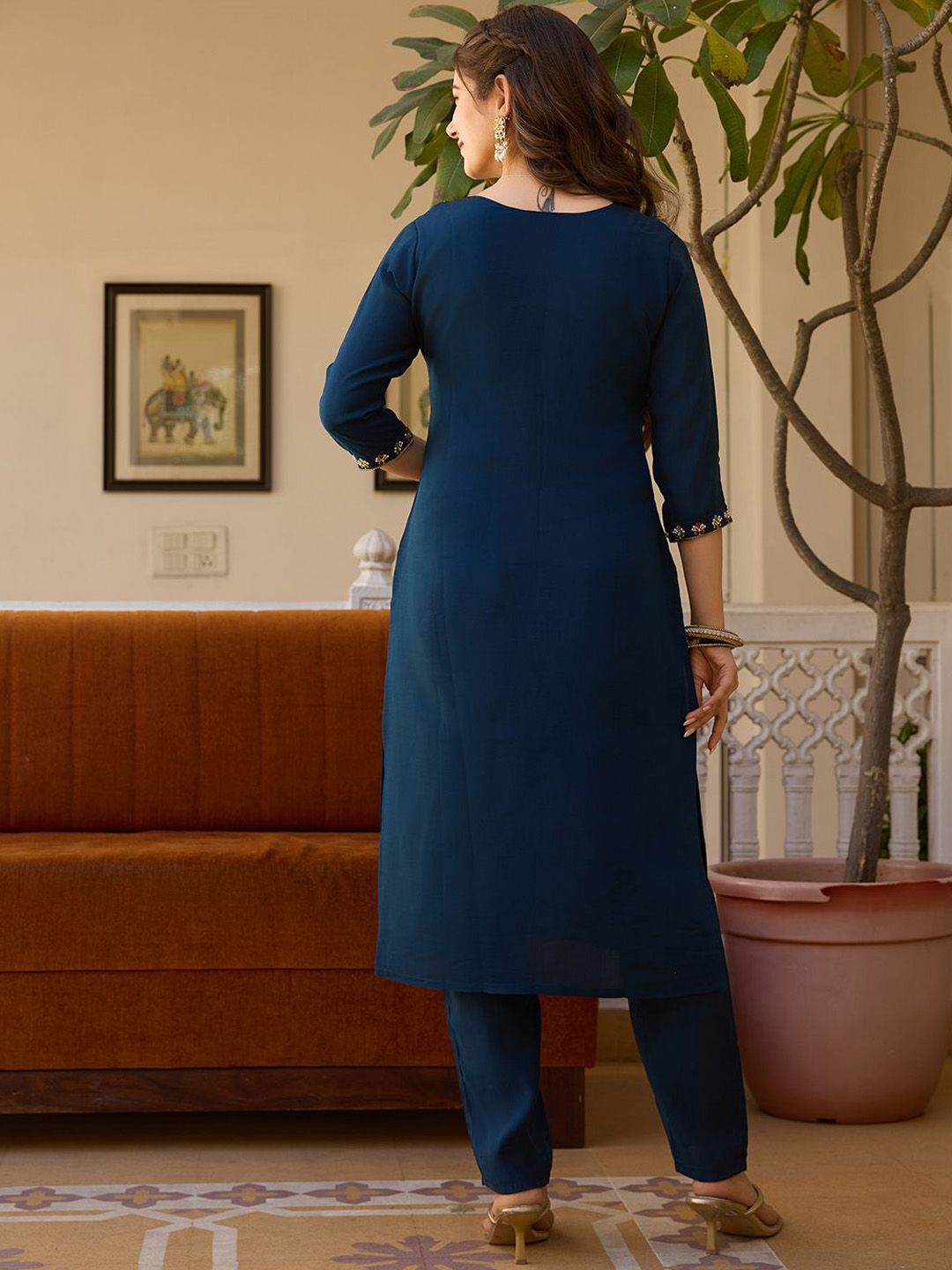 BlueRang Floral Embroidered Beads and Stones Chanderi Silk Kurta With Trouser & Dupatta