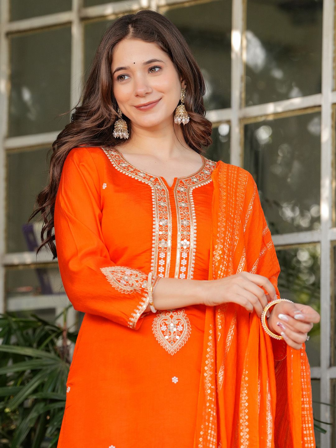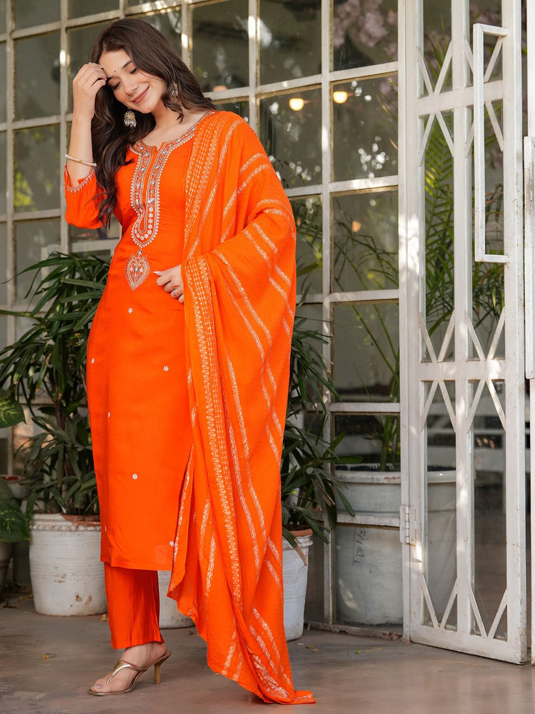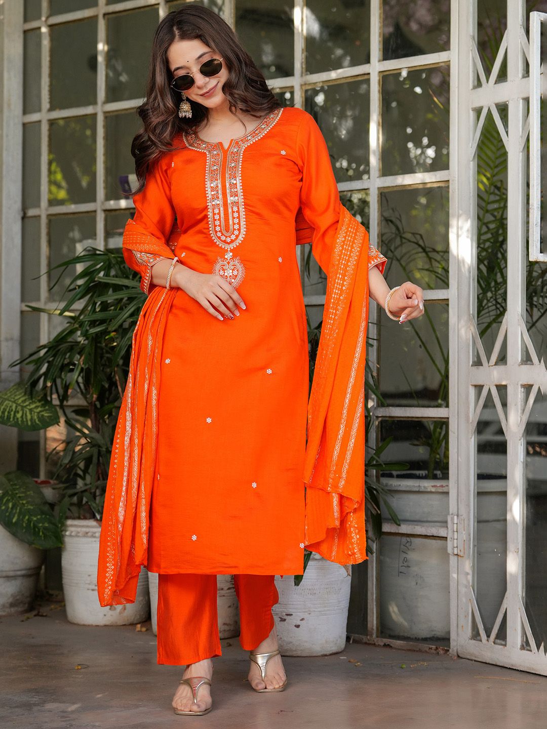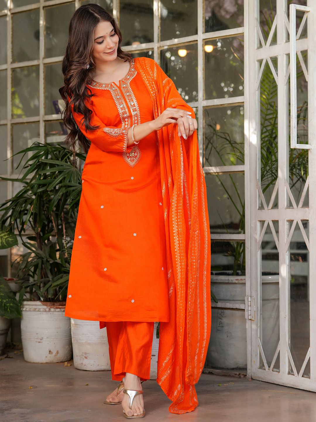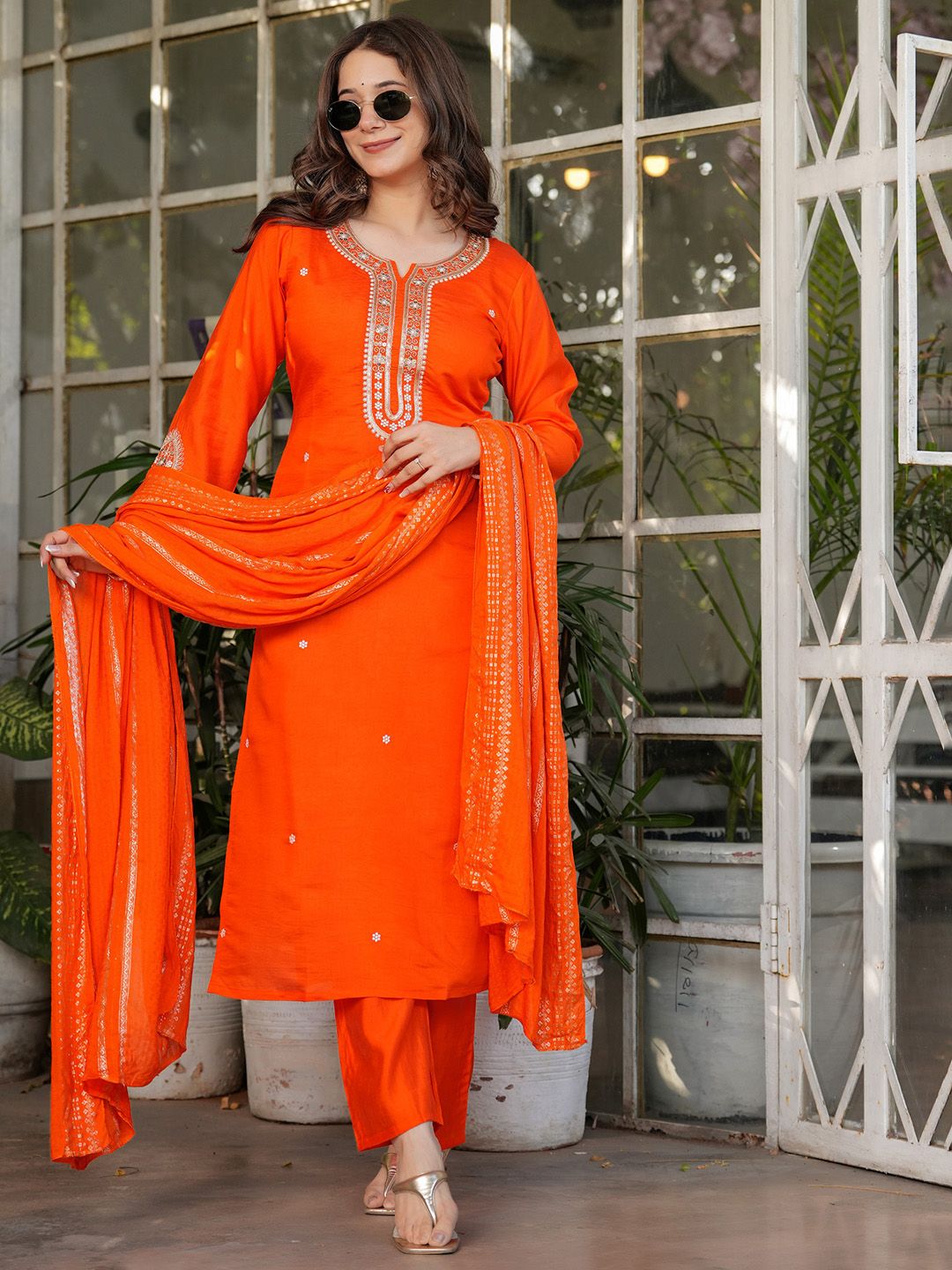 Buy this stylish BlueRang Floral Embroidered Sequinned Chanderi Silk Straight Kurta With Trousers & Dupatta at Marincart Nepal. This product offers great quality and value. Perfect for those looking for the latest trends in fashion. Get yours now at unbeatable prices.