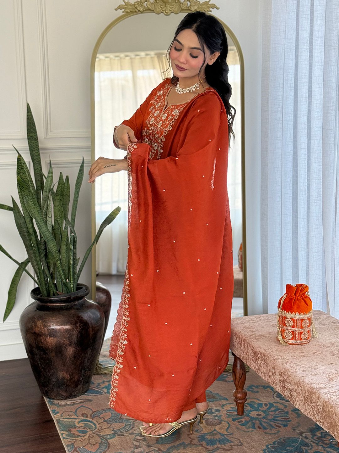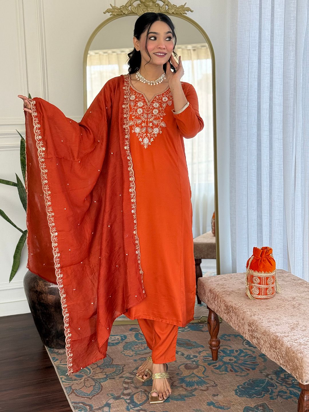 Buy this stylish BlueRang Floral Yoke Design Notch Neck Chanderi Silk Straight Kurta With Trouser & Dupatta at Marincart Nepal. This product offers great quality and value. Perfect for those looking for the latest trends in fashion. Get yours now at unbeatable prices.