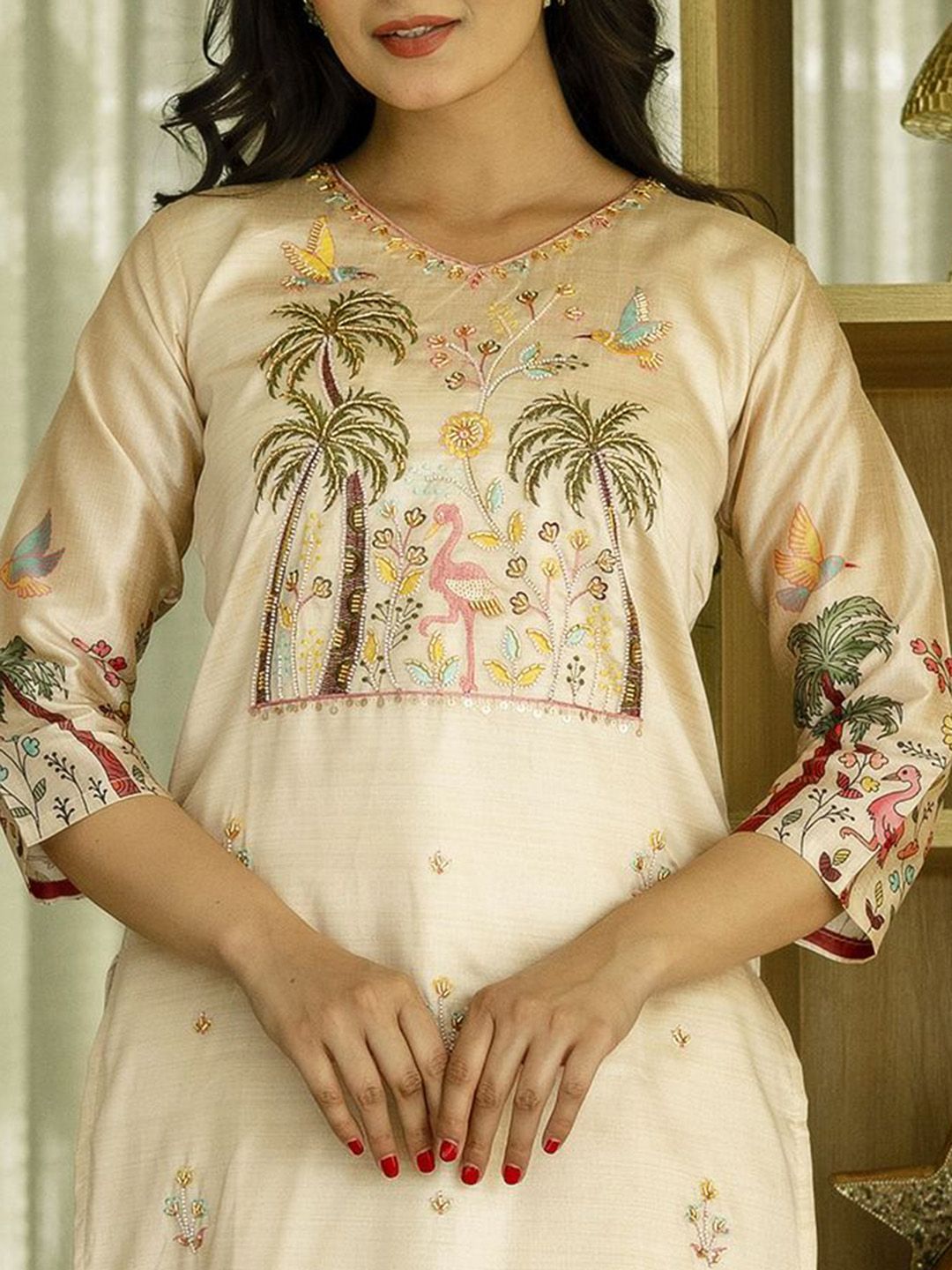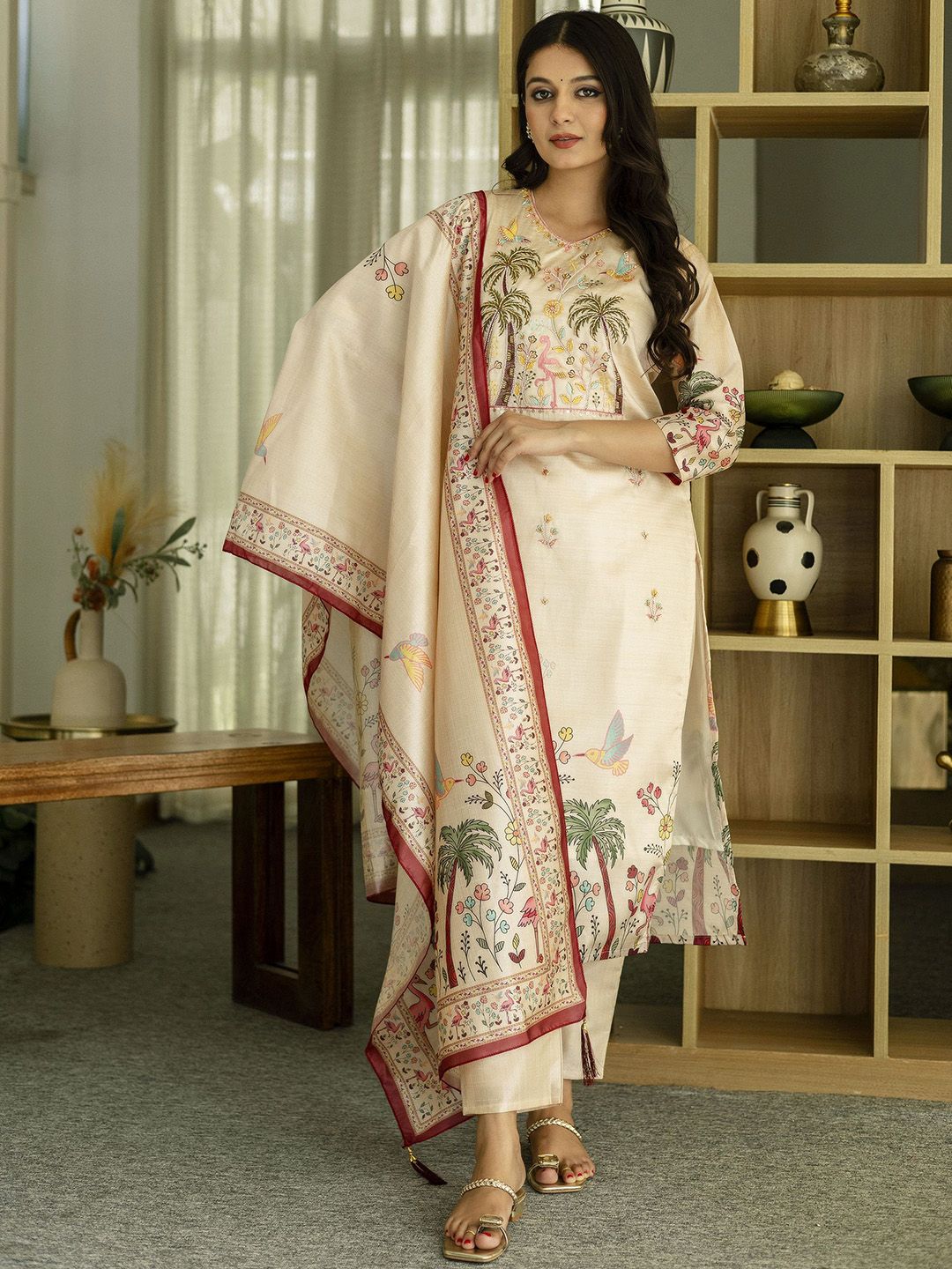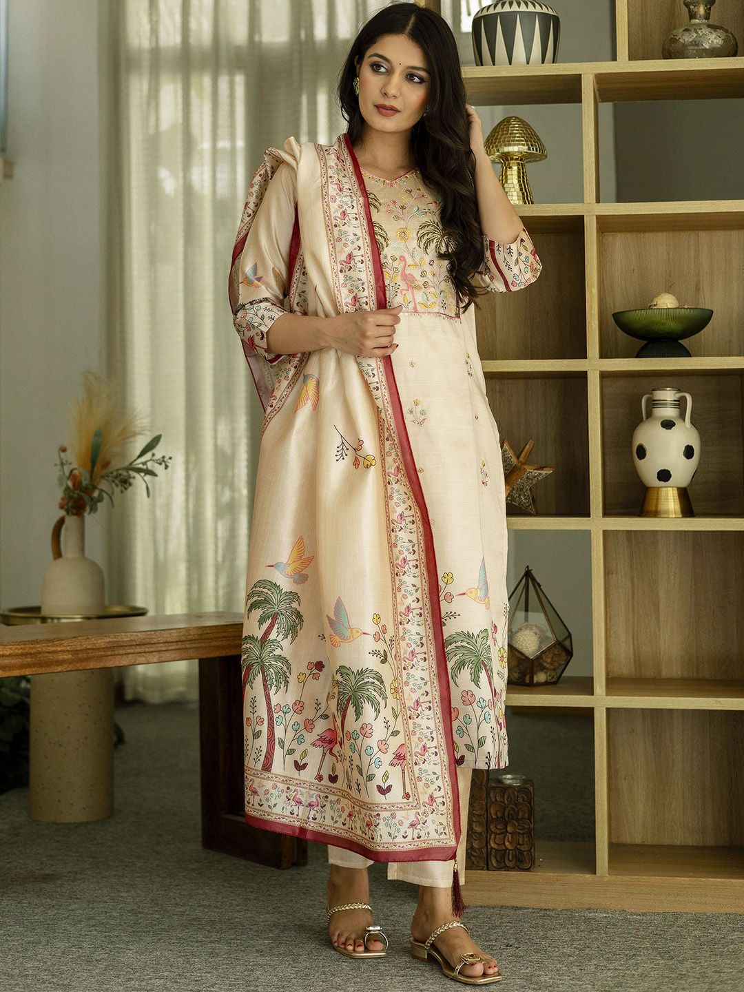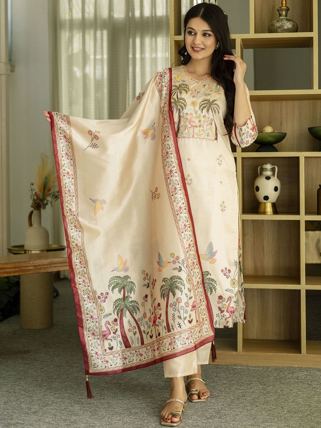 BlueRang Women Embroidered Beads and Stones Kurta with Trousers & Dupatta