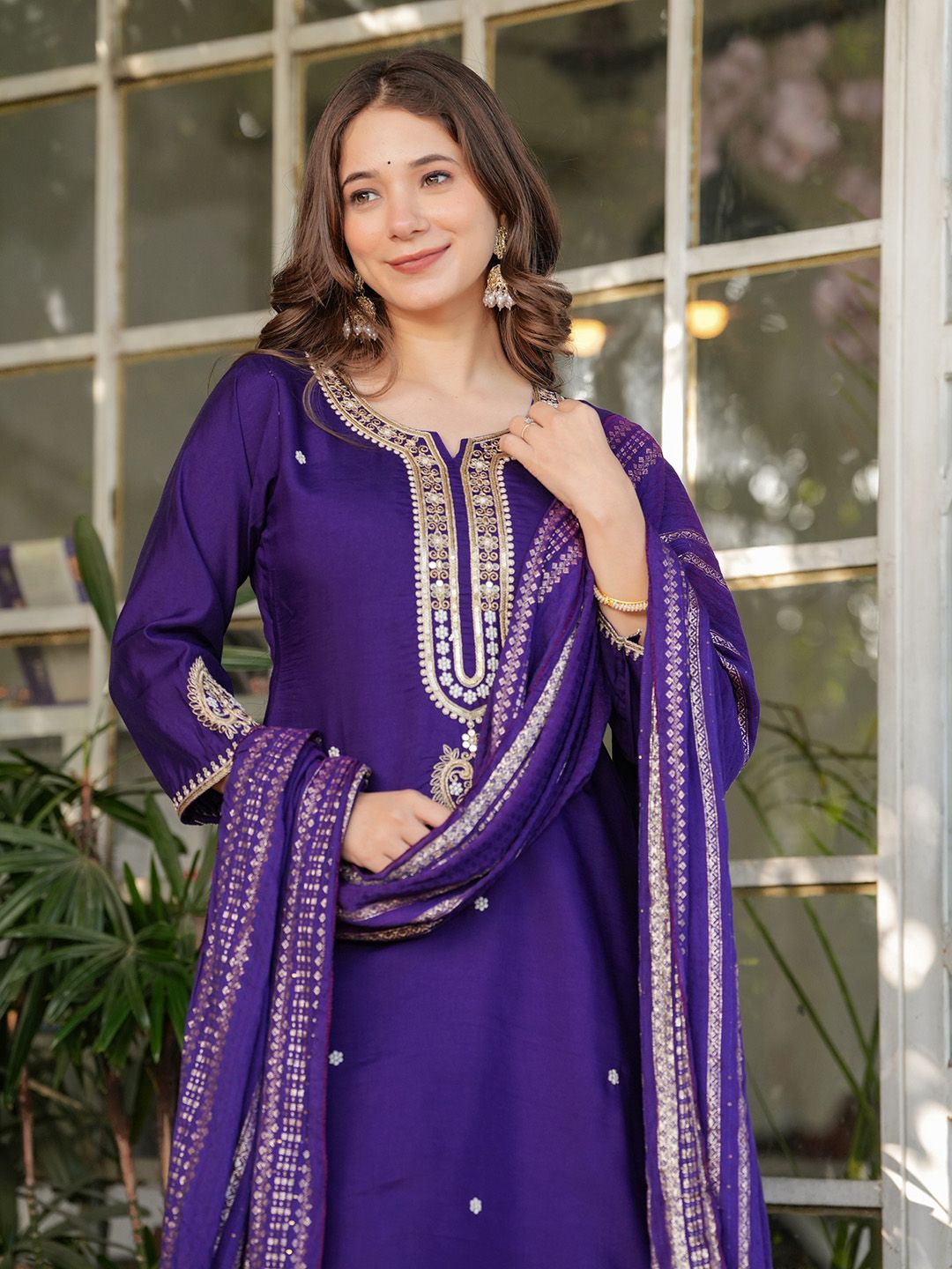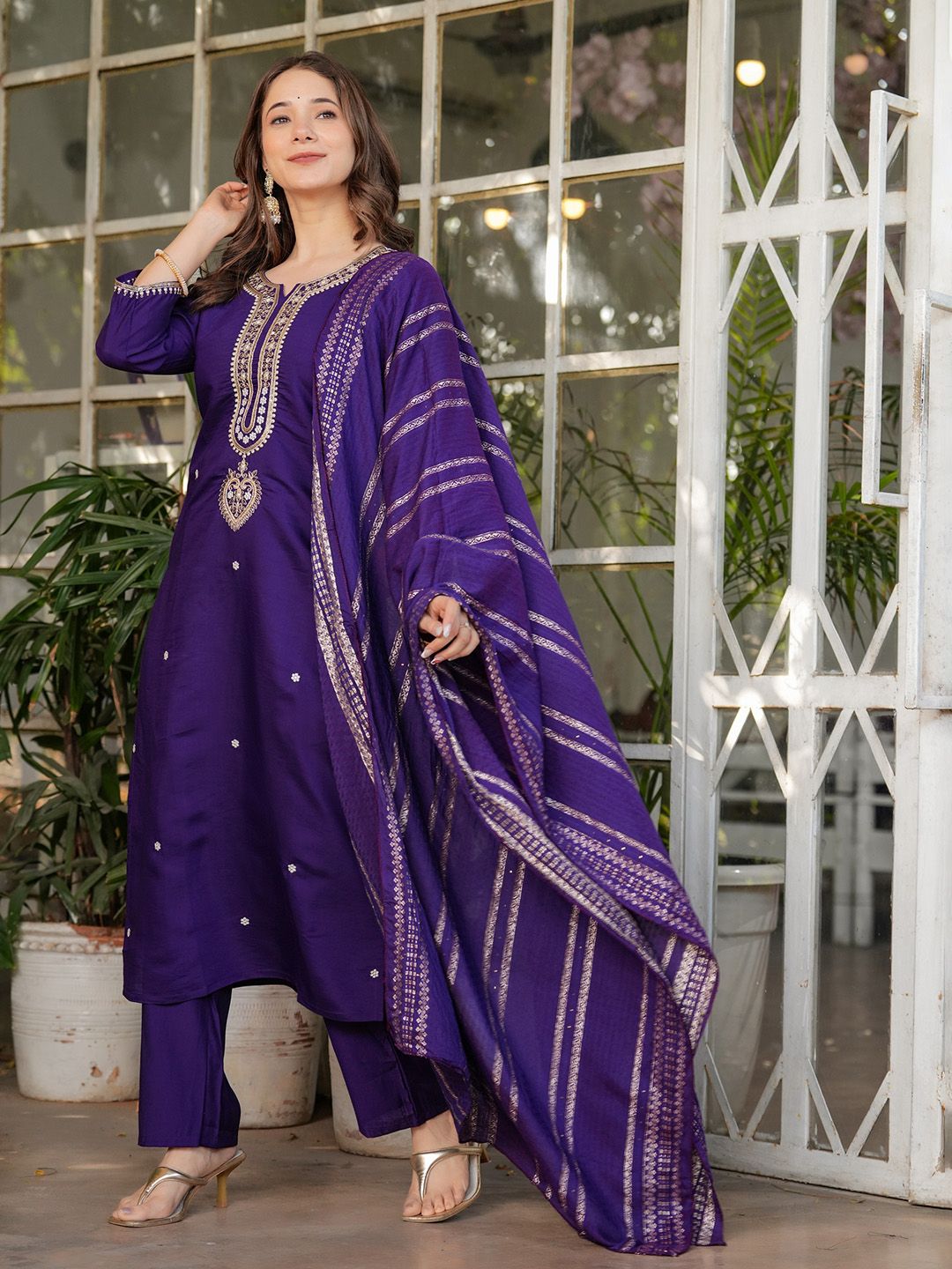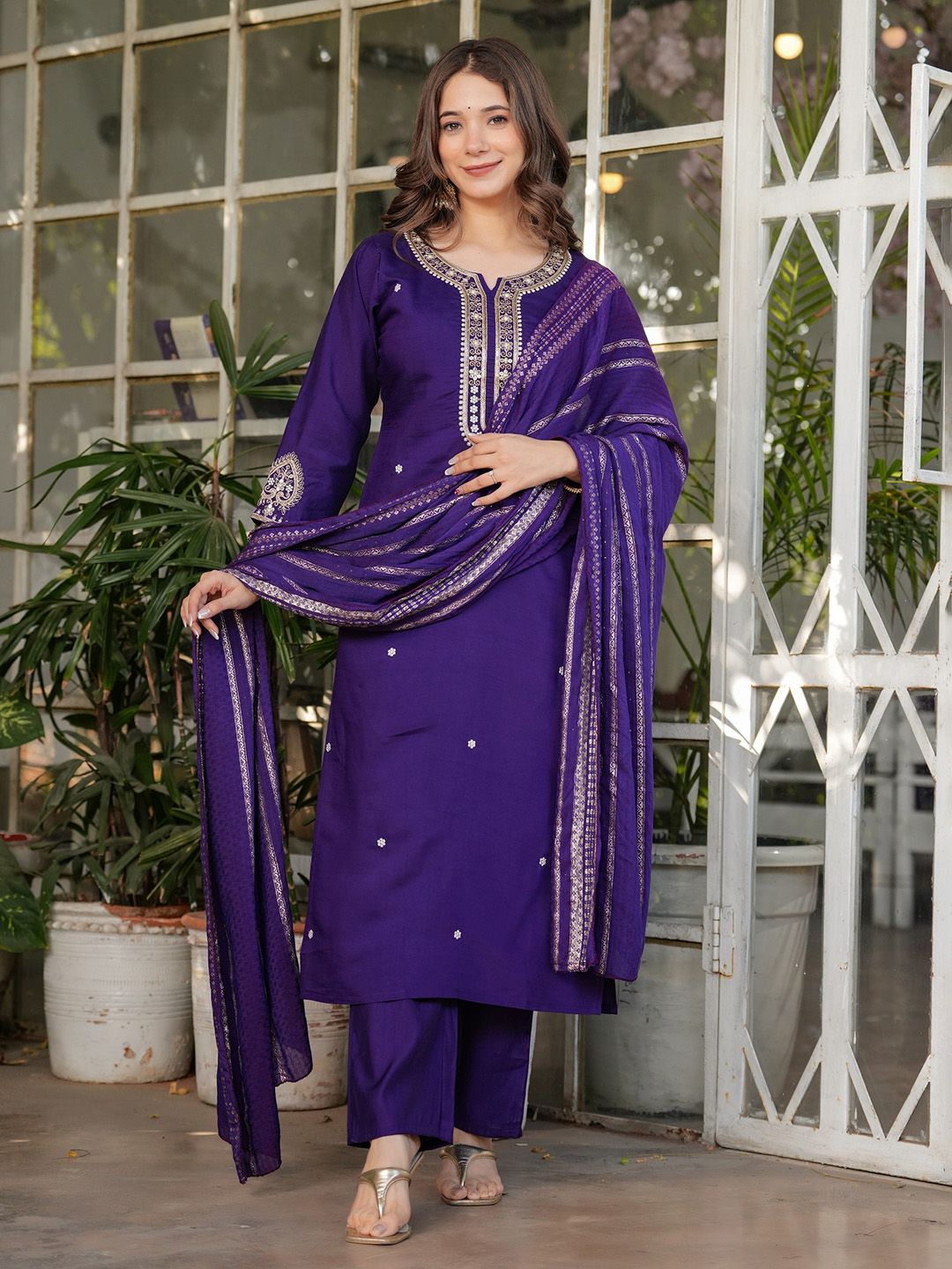 BlueRang Women Ethnic Motifs Embroidered Regular Kurta Set With Dupatta