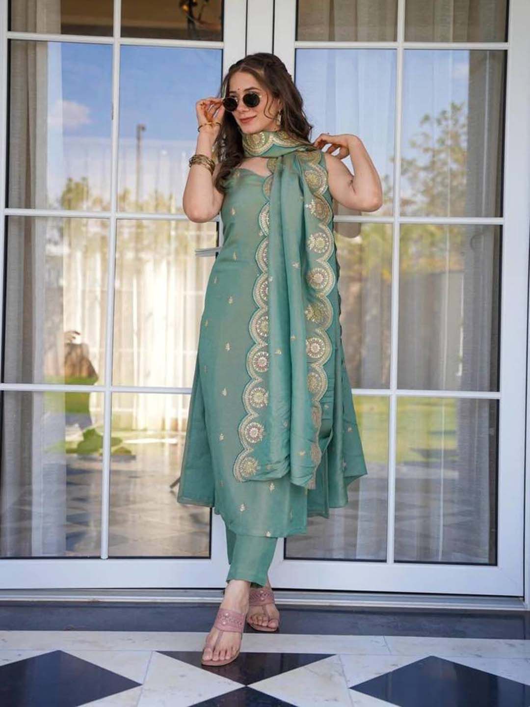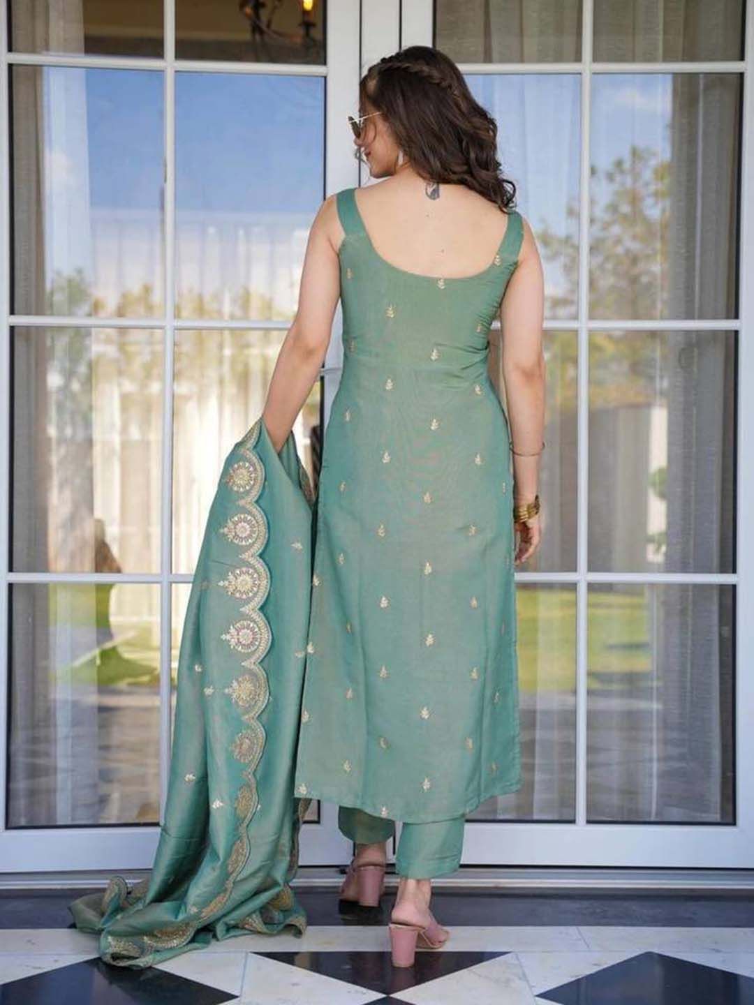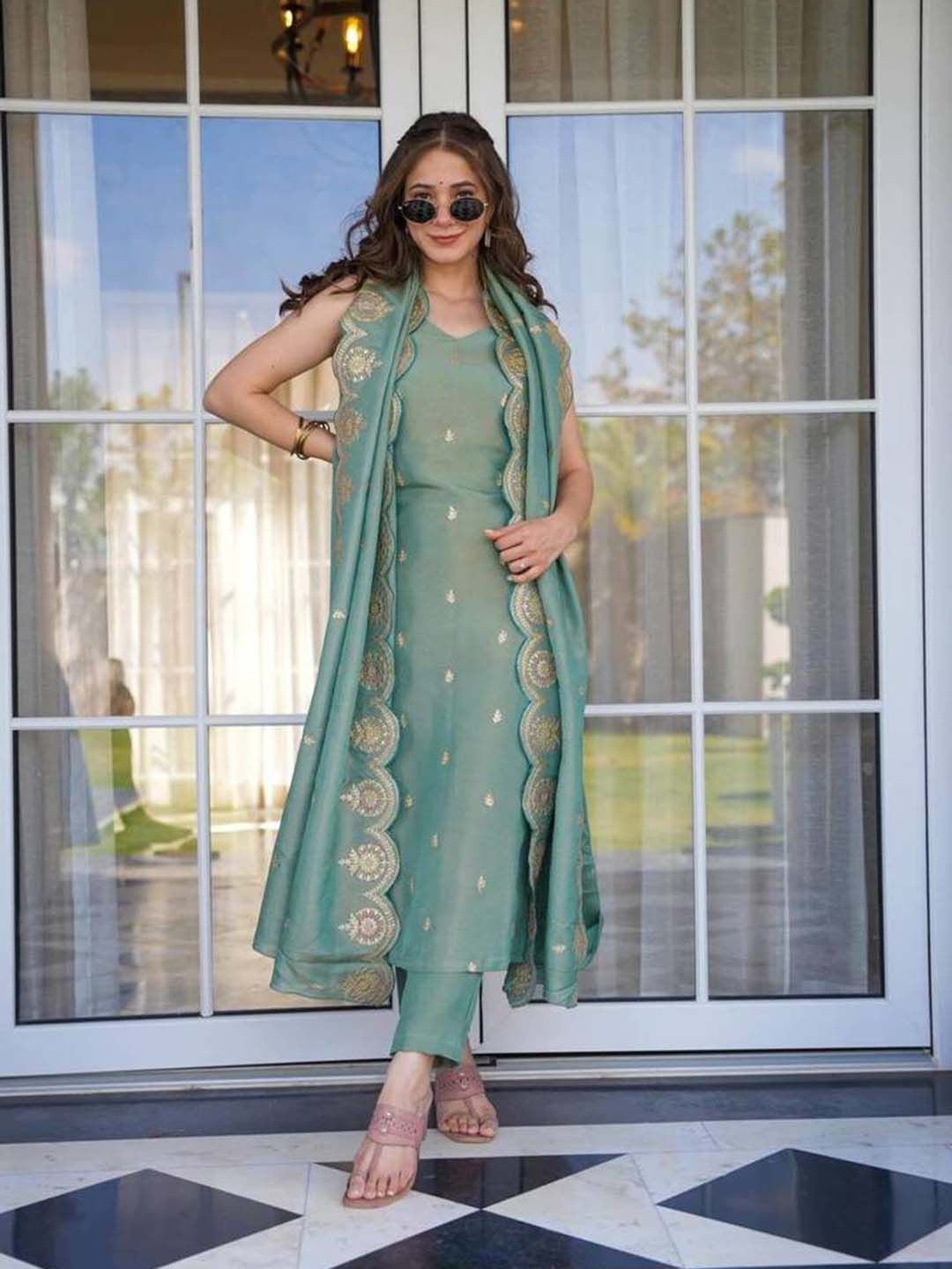 BlueRang Women Floral Embroidered Kurta with Trousers & Dupatta