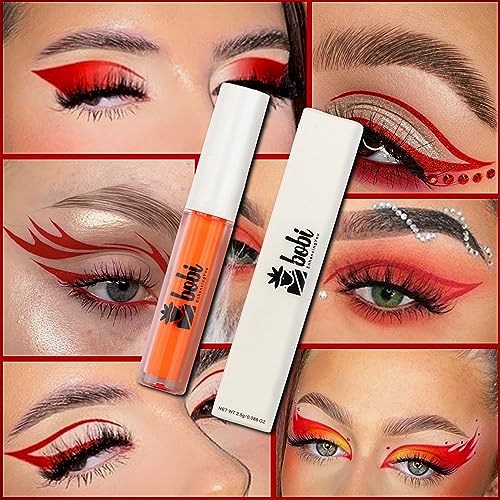BOBI Red Neon Liquid Eyeliner Waterproof, Matt, Smudge Proof, Long Lasting, 100% Vegan, Cruelty-Free, Eye Liner for Women & Girls, Colourful Eyeliner
