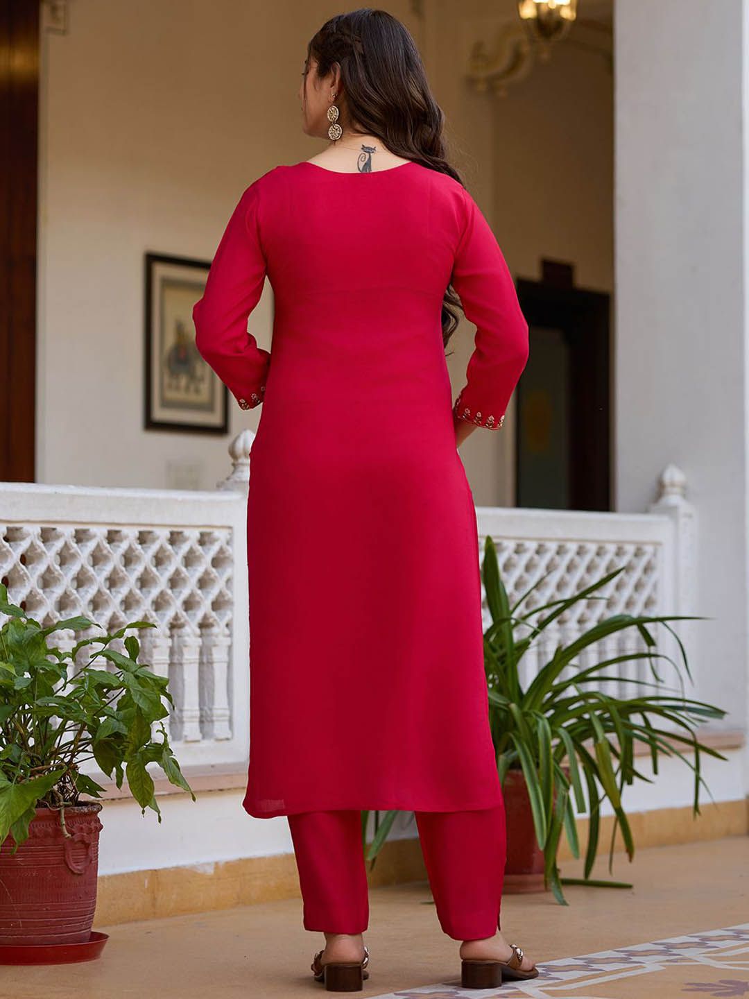 Brand Hill Embroidered V-Neck Beads & Stones Chanderi Silk Straight Kurta Set