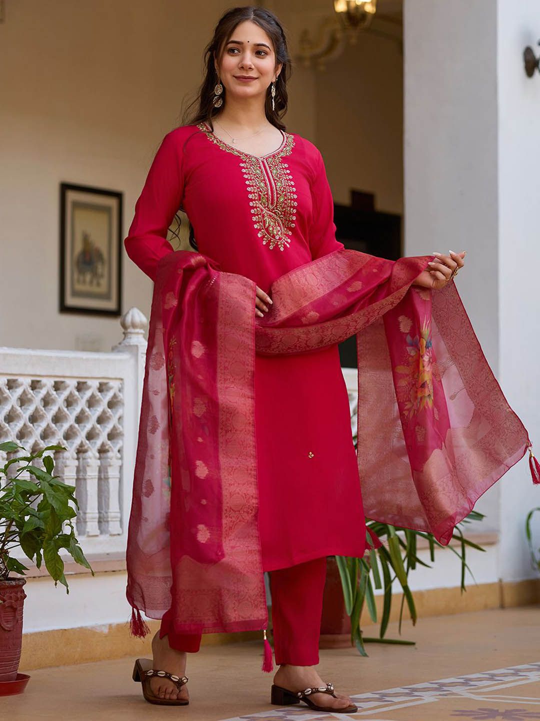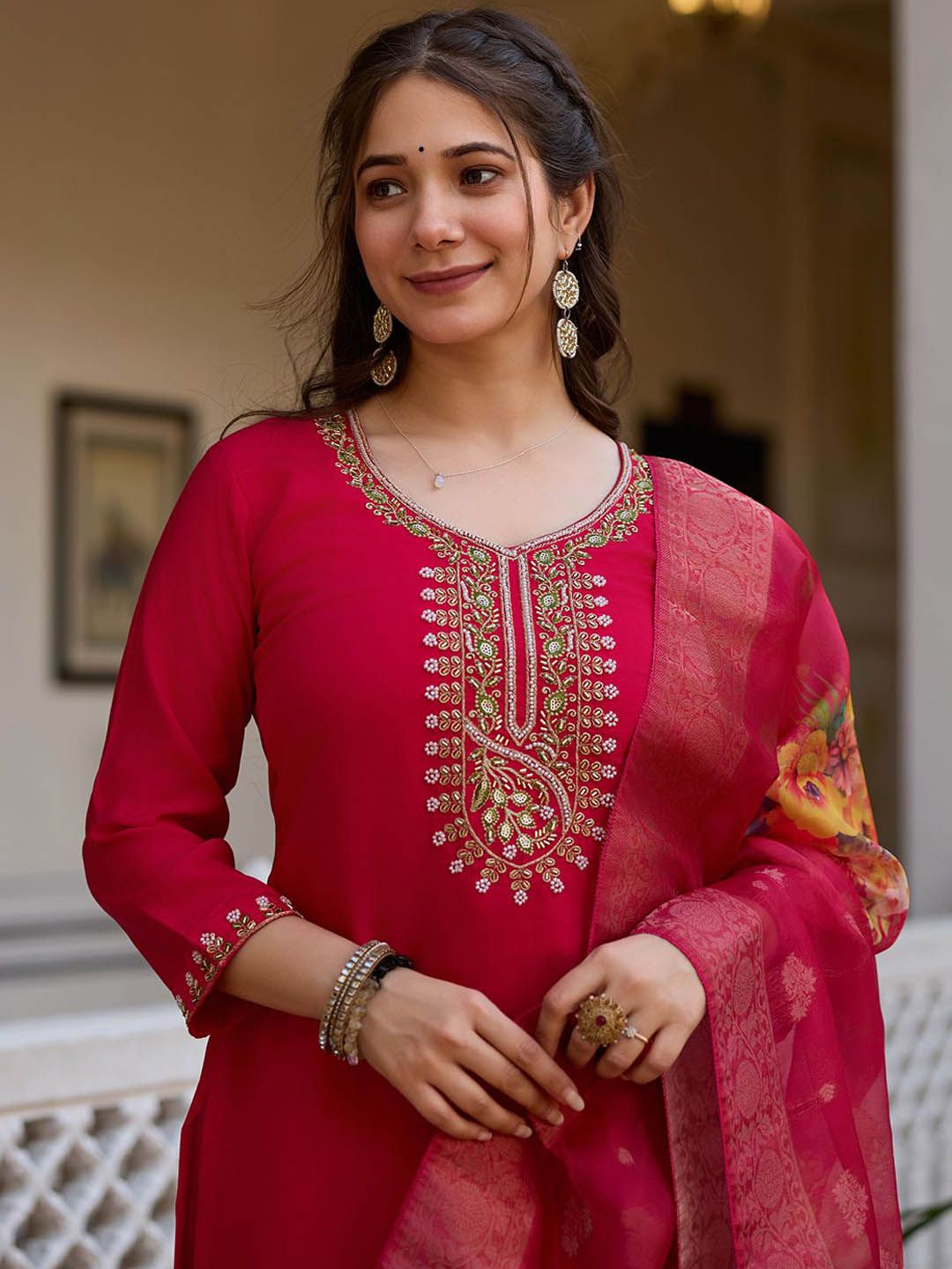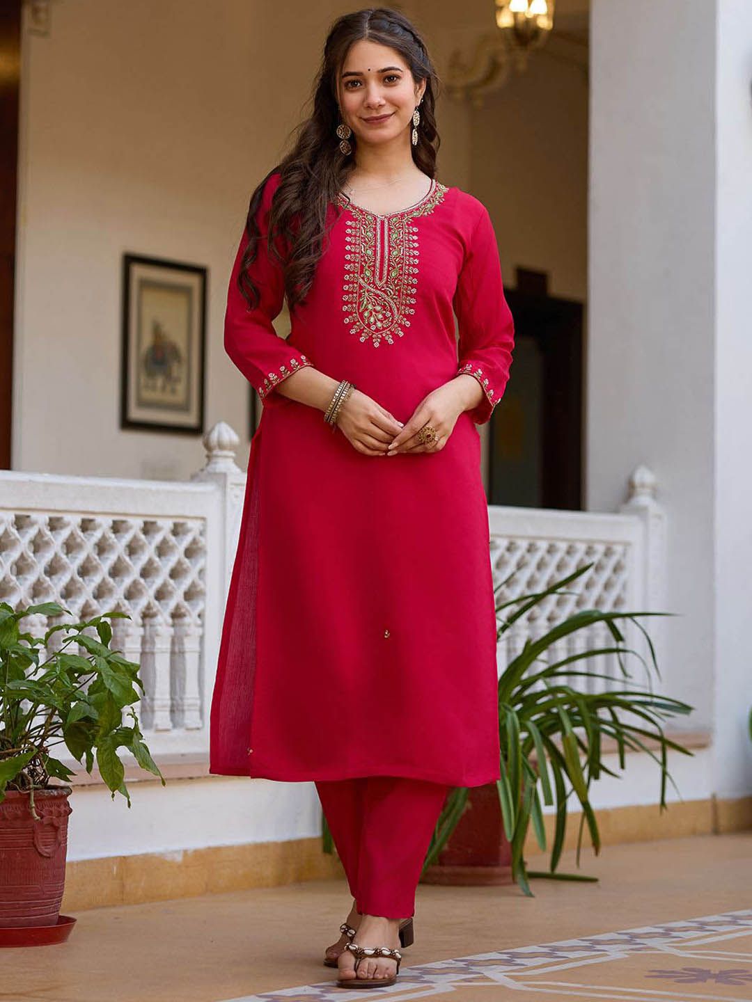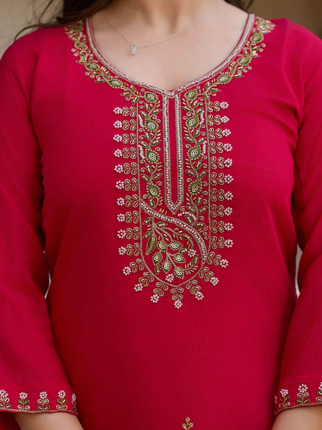 Buy this stylish Brand Hill Embroidered V-Neck Beads & Stones Chanderi Silk Straight Kurta Set at Marincart Nepal. This product offers great quality and value. Perfect for those looking for the latest trends in fashion. Get yours now at unbeatable prices.