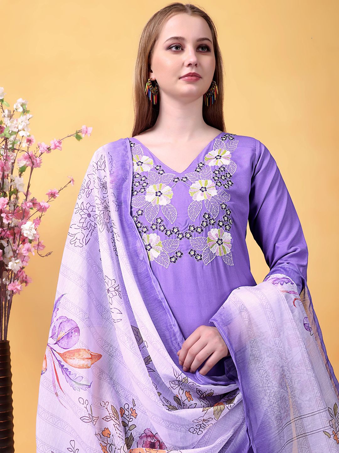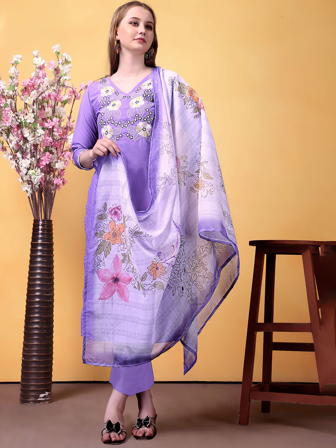Brand Hill Women Ethnic Motifs Embroidered Straight Kurta with Trousers & Dupatta