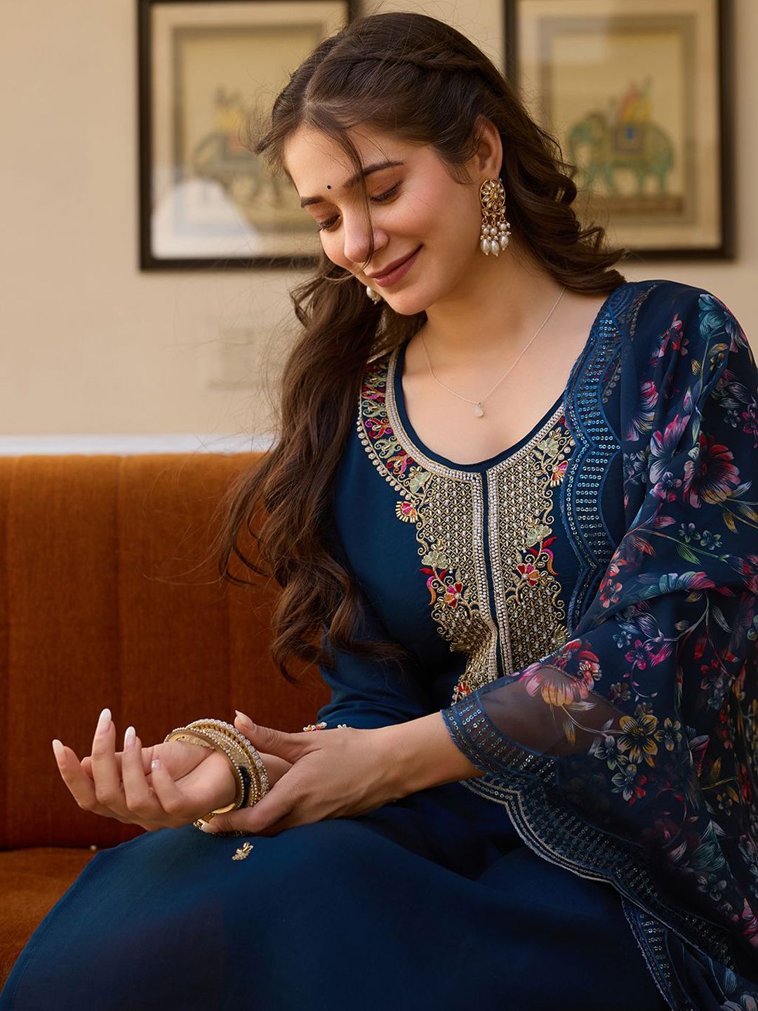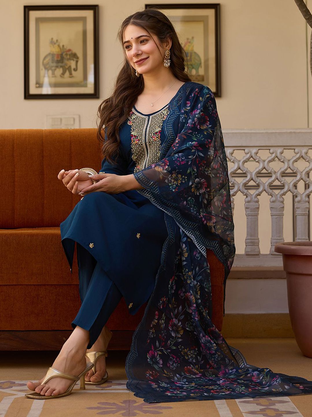 Brand Hill Women Floral Embroidered Beads and Stones Kurta with Trousers & Dupatta