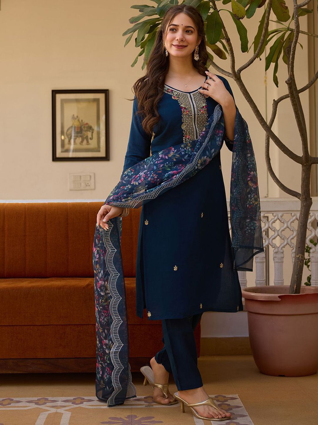 Buy this stylish Brand Hill Women Floral Embroidered Beads and Stones Kurta with Trousers & Dupatta at Marincart Nepal. This product offers great quality and value. Perfect for those looking for the latest trends in fashion. Get yours now at unbeatable prices.