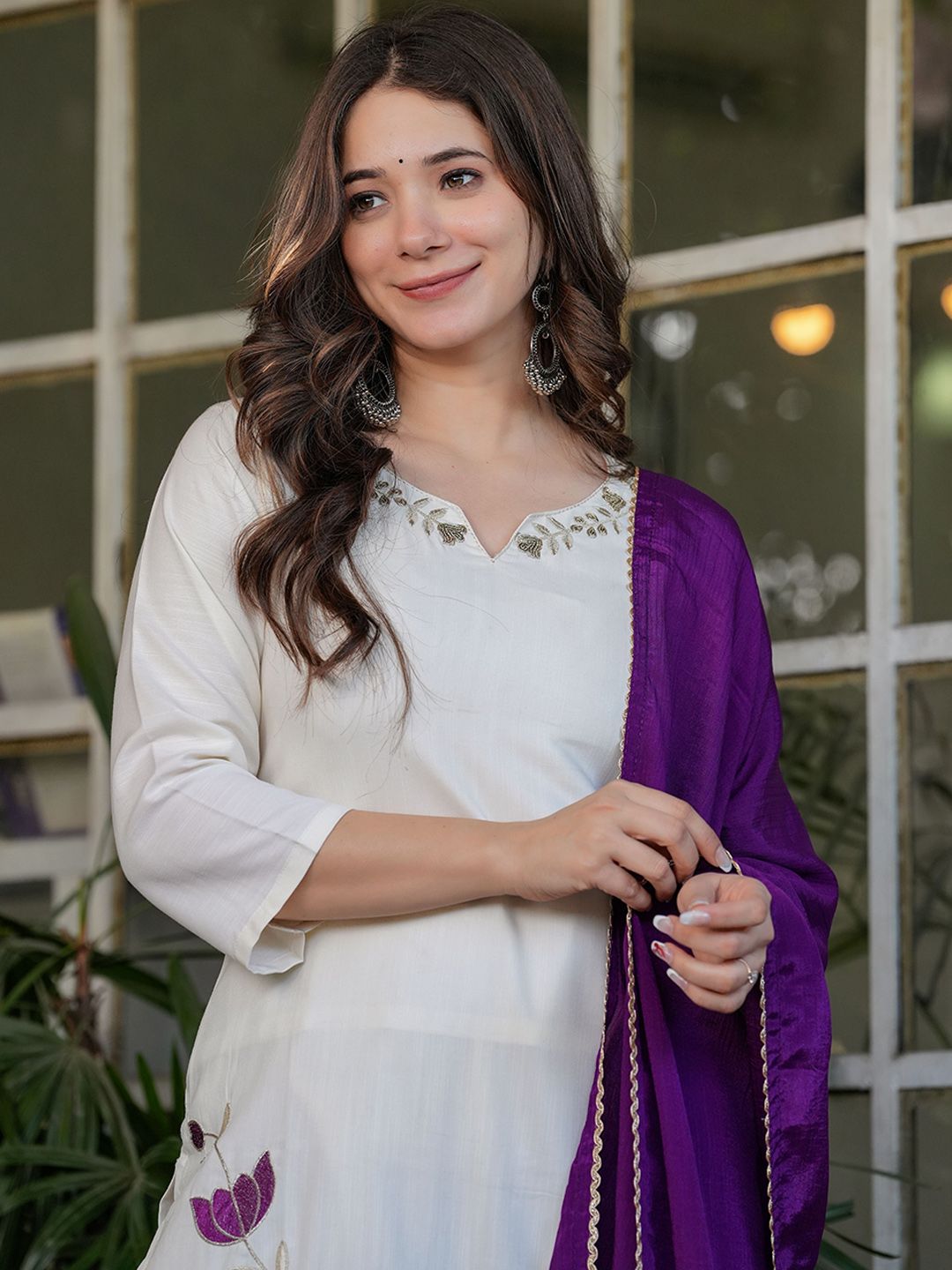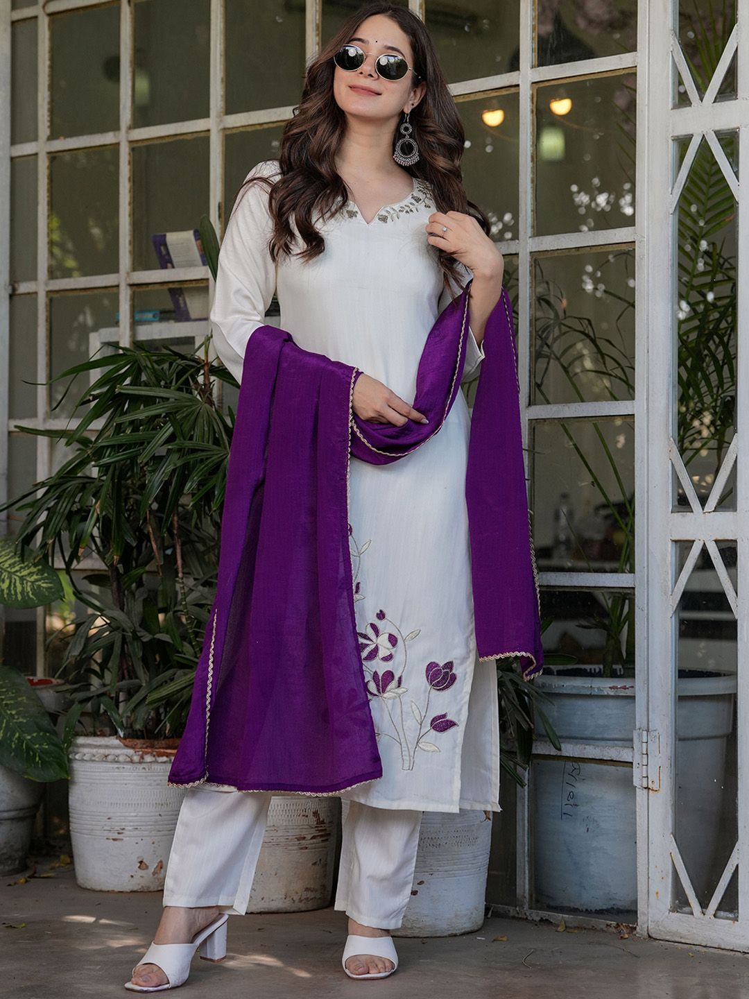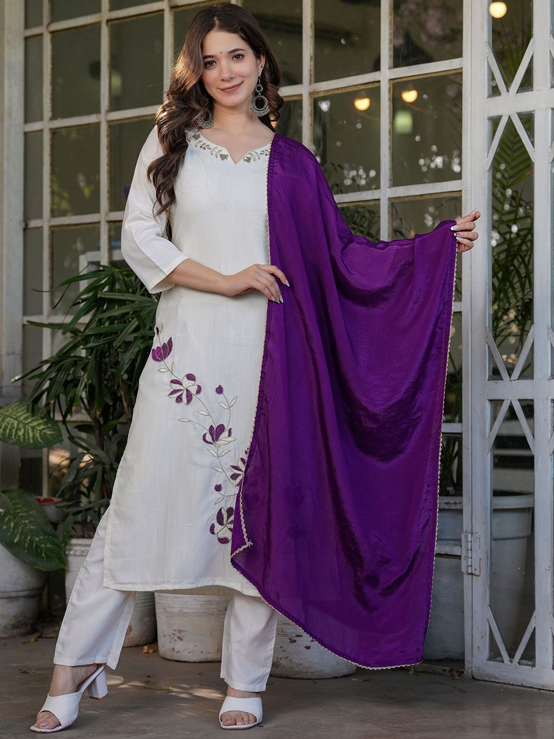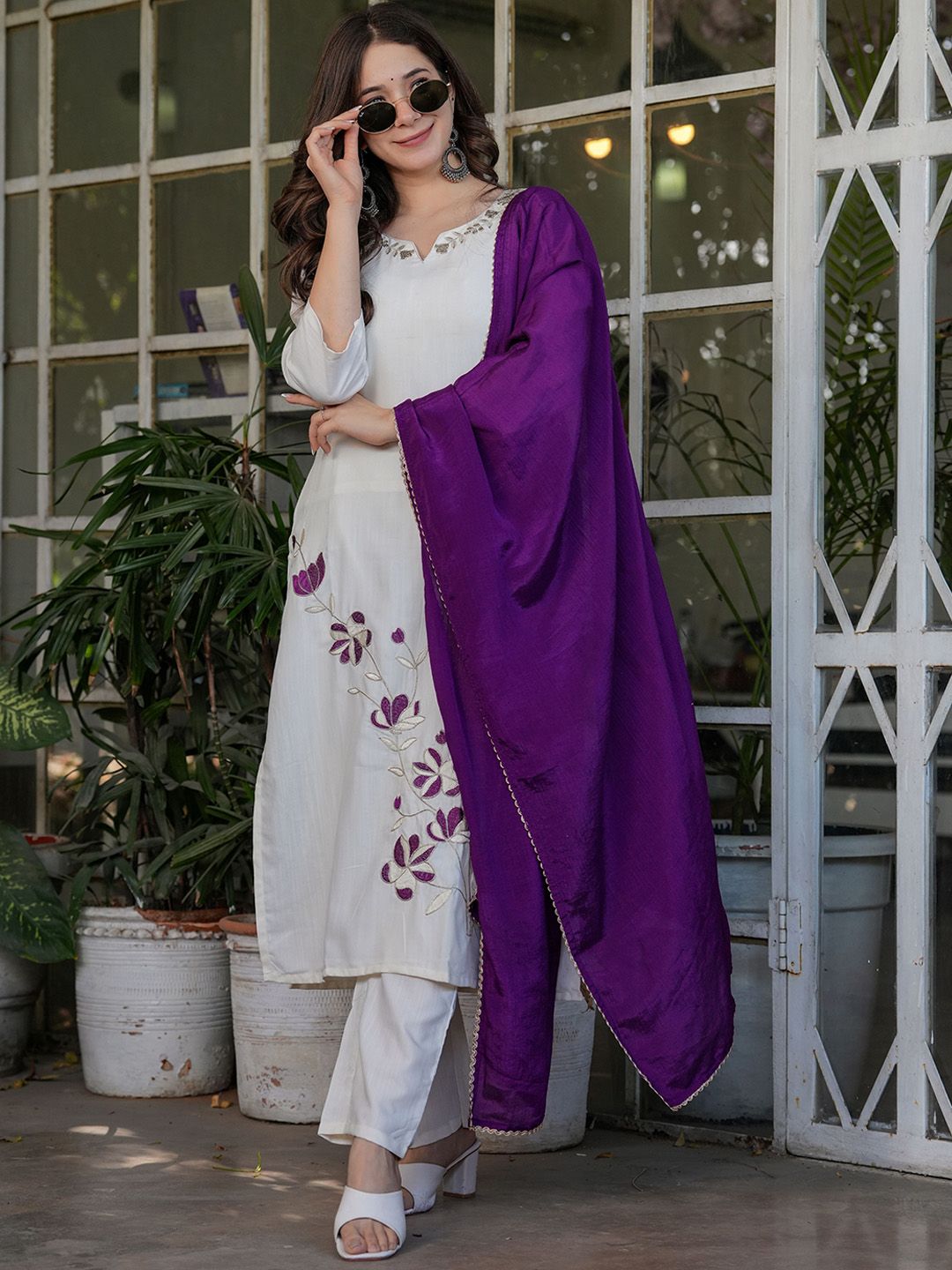 Brand Hill Women Floral Embroidered Thread Work Kurta with Trousers & Dupatta