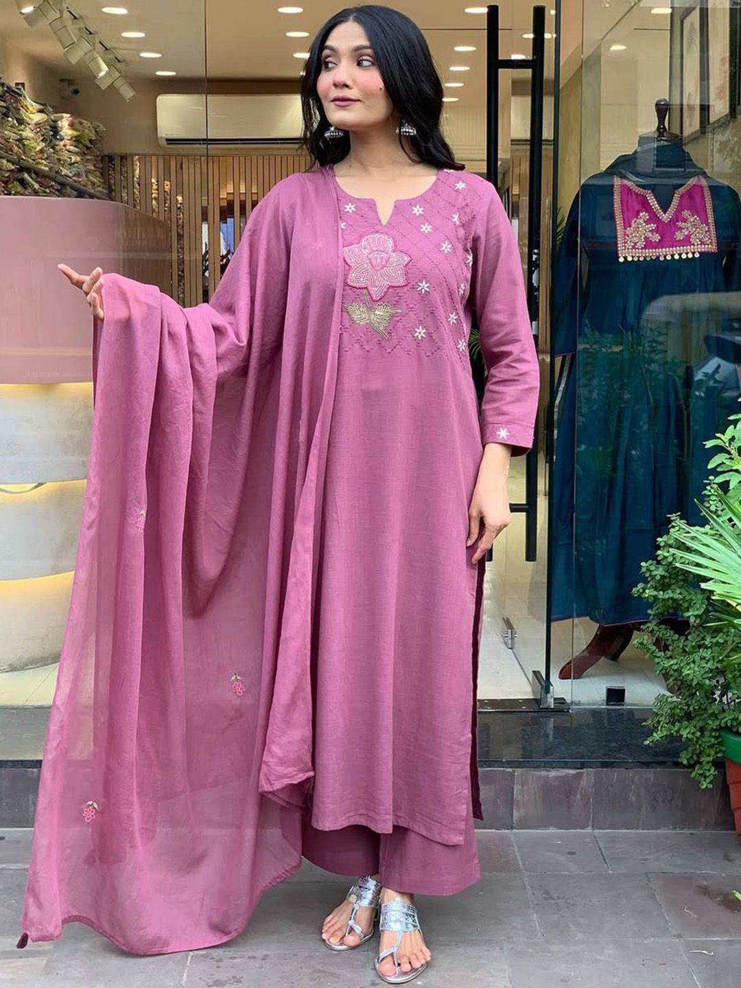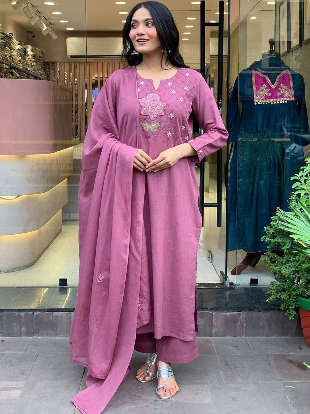 Brand Hill Women Floral Printed Cotton Kurta with Trousers & Dupatta