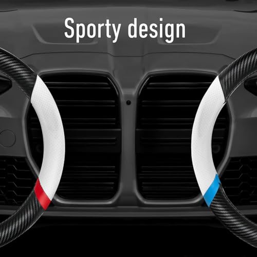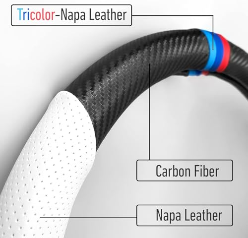 Brikipth Premium Leather & Carbon Fiber D-Shape Steering Wheel Cover Non-Slip Breathable Durable Universal Fit 15 Inch Steering Wheels Flat Bottom for Car Auto/SUV