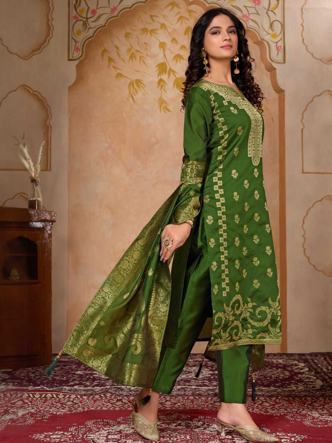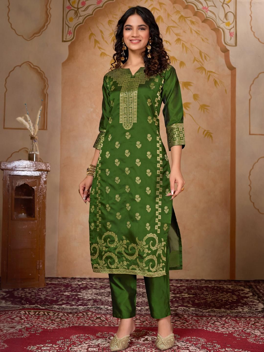 BROYAAR SHOP Women Gold Art Silk Kurta Sets