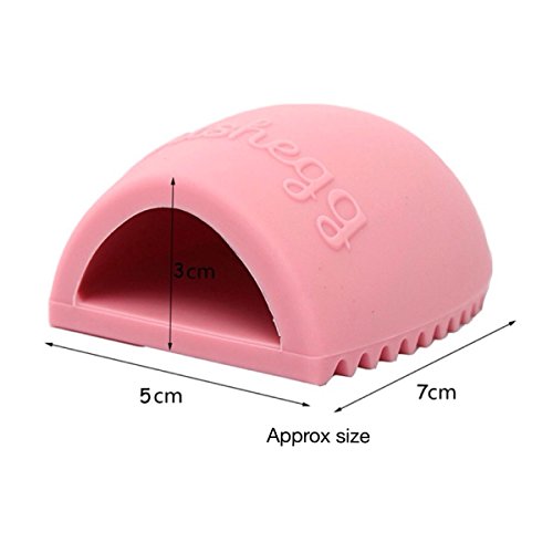 The brush egg is made of hard silicone and fits snugly in the palm of your hand Swirl the wet and shampooed brush in circular movements over the ridges of the egg to get all product removed Use the smaller brushes on the little nubs to remove eyeshadow or liquid eyeliner