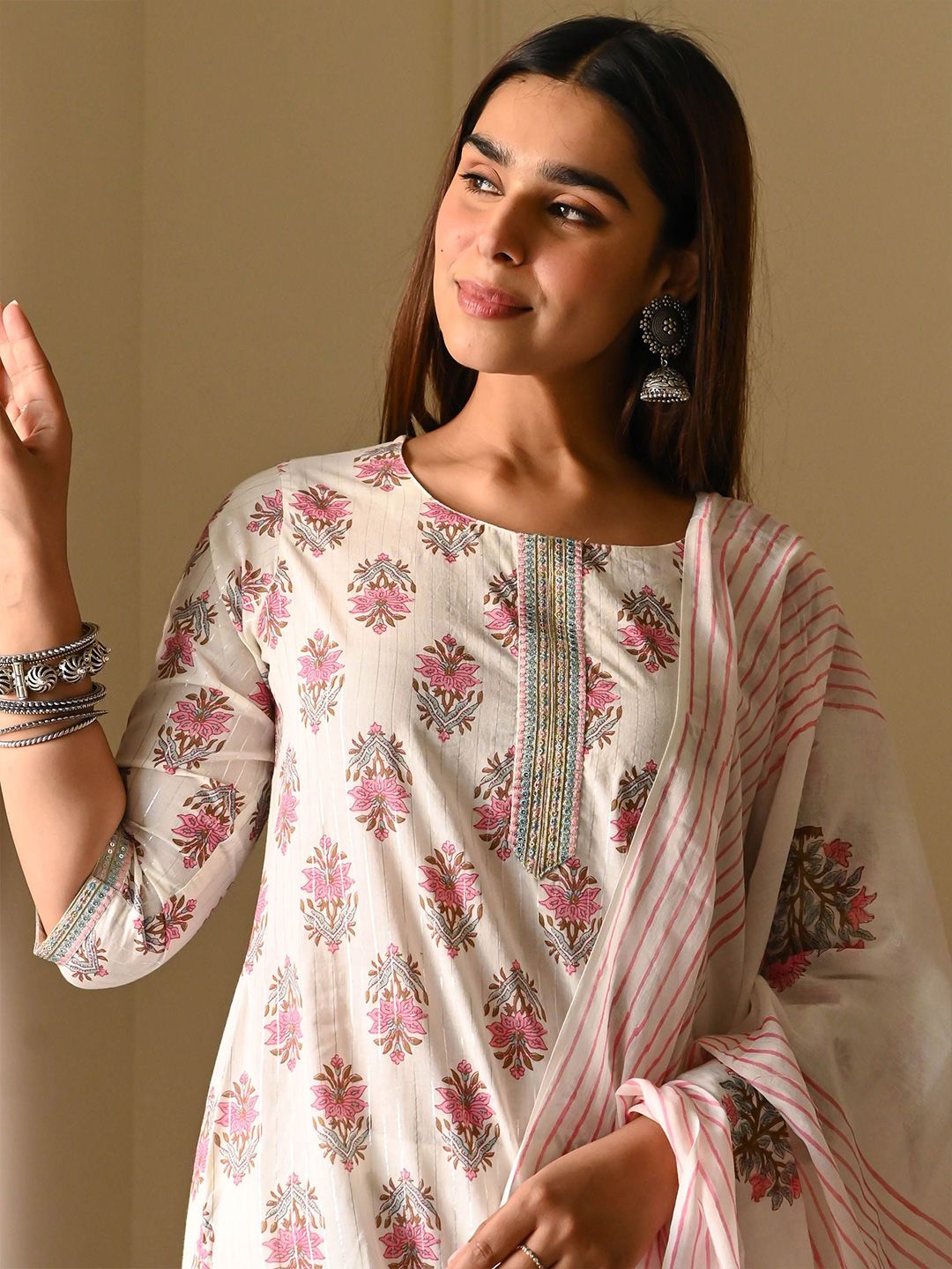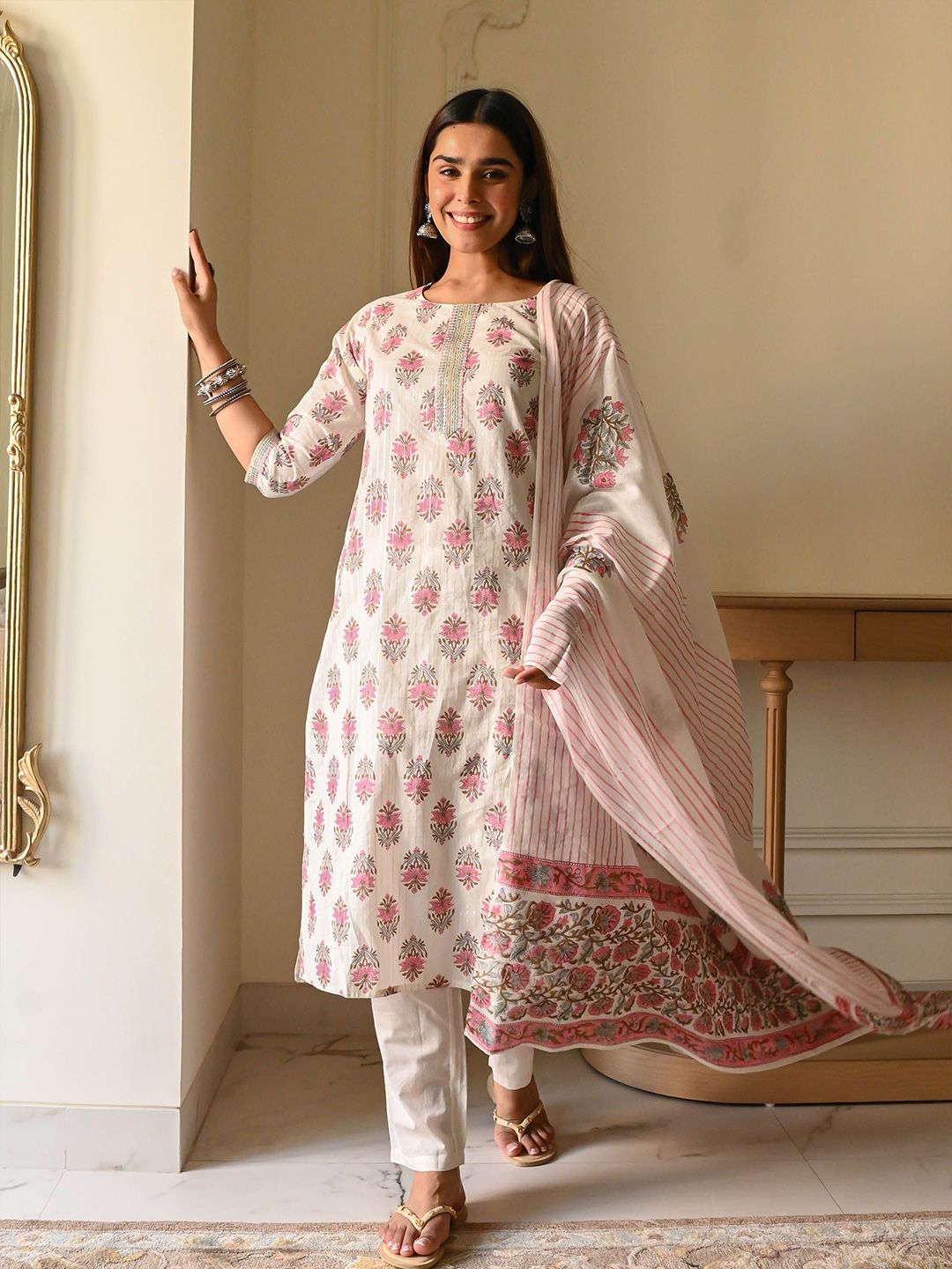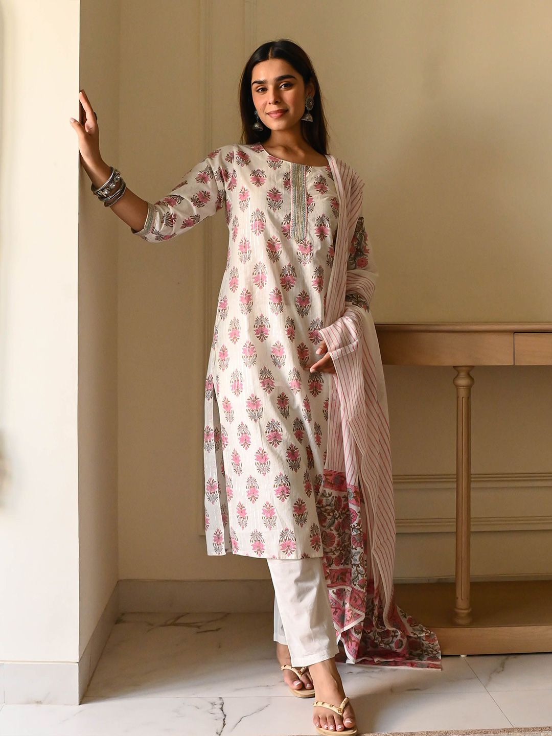 Bunaai Yashika Women Ethnic Motifs Printed Regular Kurta with Trousers & With Dupatta