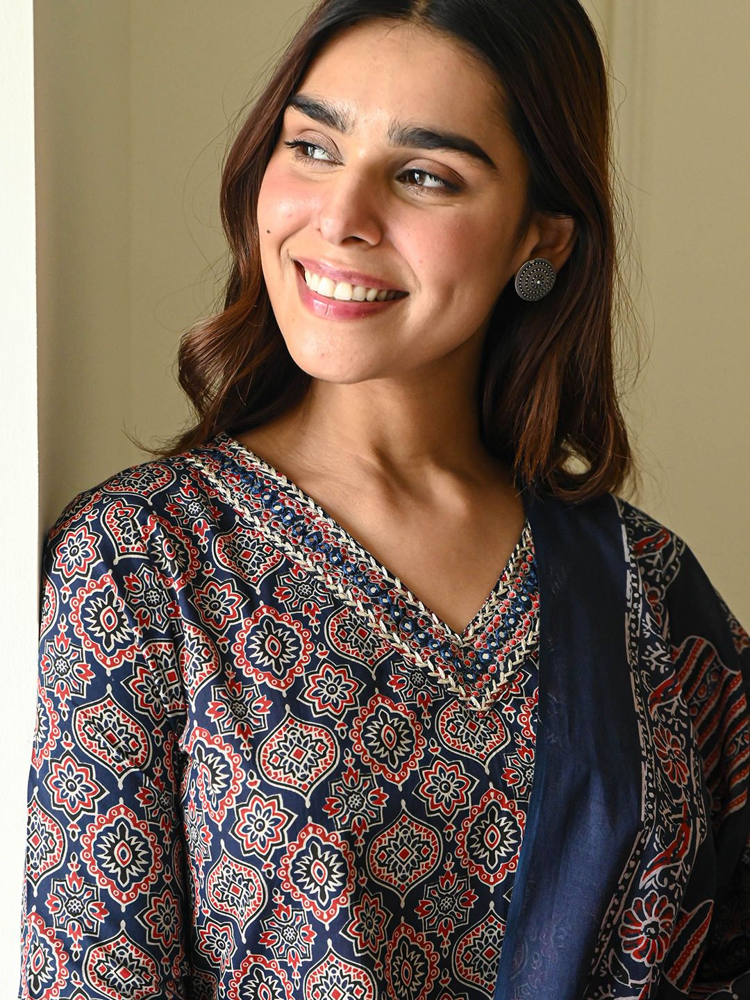Buy this stylish Bunaai Avika Floral Printed V-Neck Straight Kurta With Trousers & Dupatta at Marincart Nepal. This product offers great quality and value. Perfect for those looking for the latest trends in fashion. Get yours now at unbeatable prices.