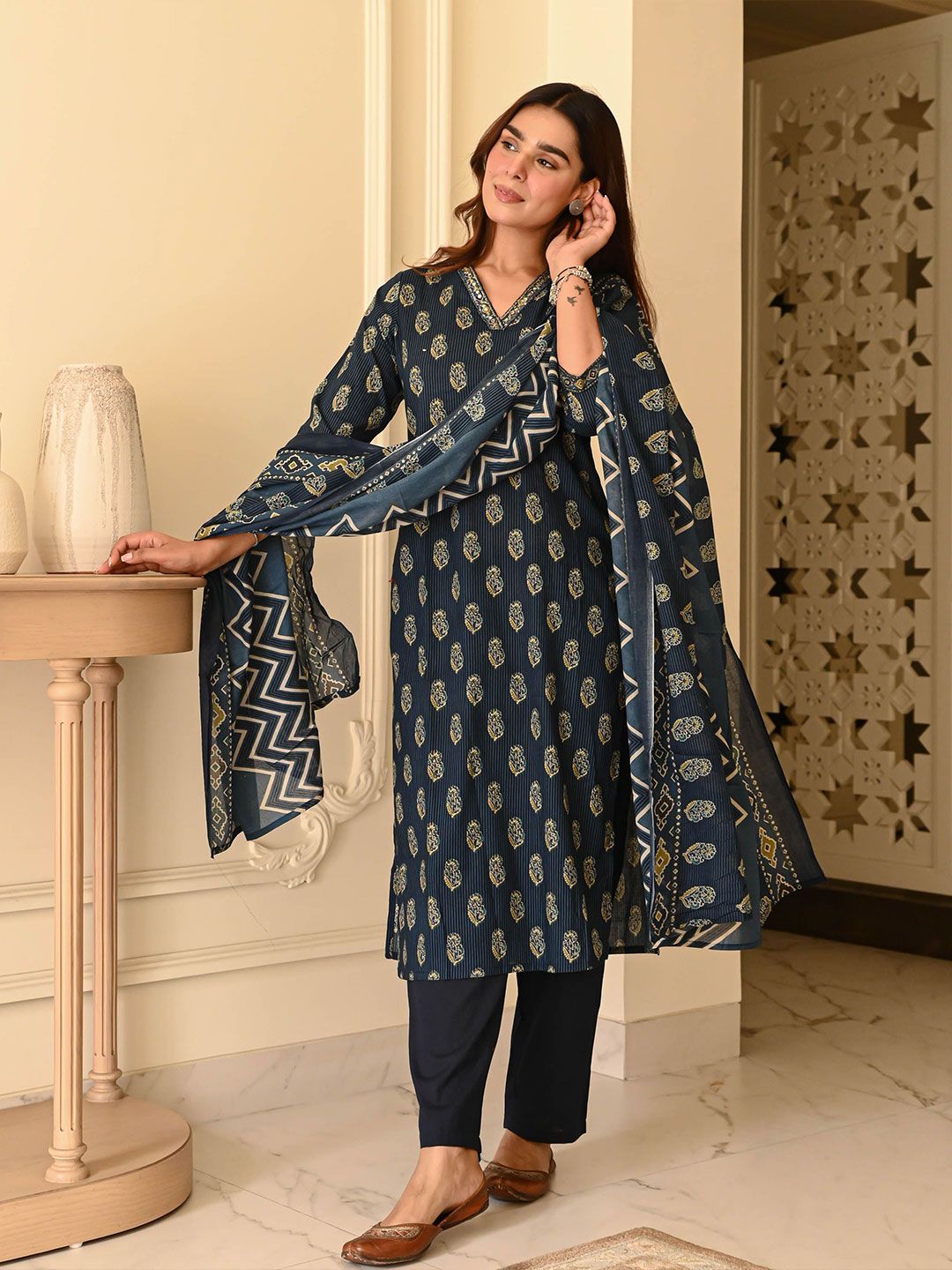 Buy this stylish Bunaai Kajol Floral Printed Pure Cotton Sequinned Kurta With Trousers & Dupatta at Marincart Nepal. This product offers great quality and value. Perfect for those looking for the latest trends in fashion. Get yours now at unbeatable prices.