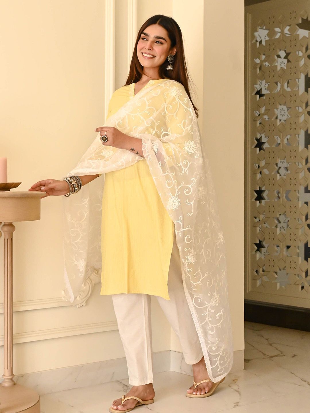 Buy this stylish Bunaai Lavanya Striped Notch Neck Thread Work Kurta With Trousers & Dupatta at Marincart Nepal. This product offers great quality and value. Perfect for those looking for the latest trends in fashion. Get yours now at unbeatable prices.