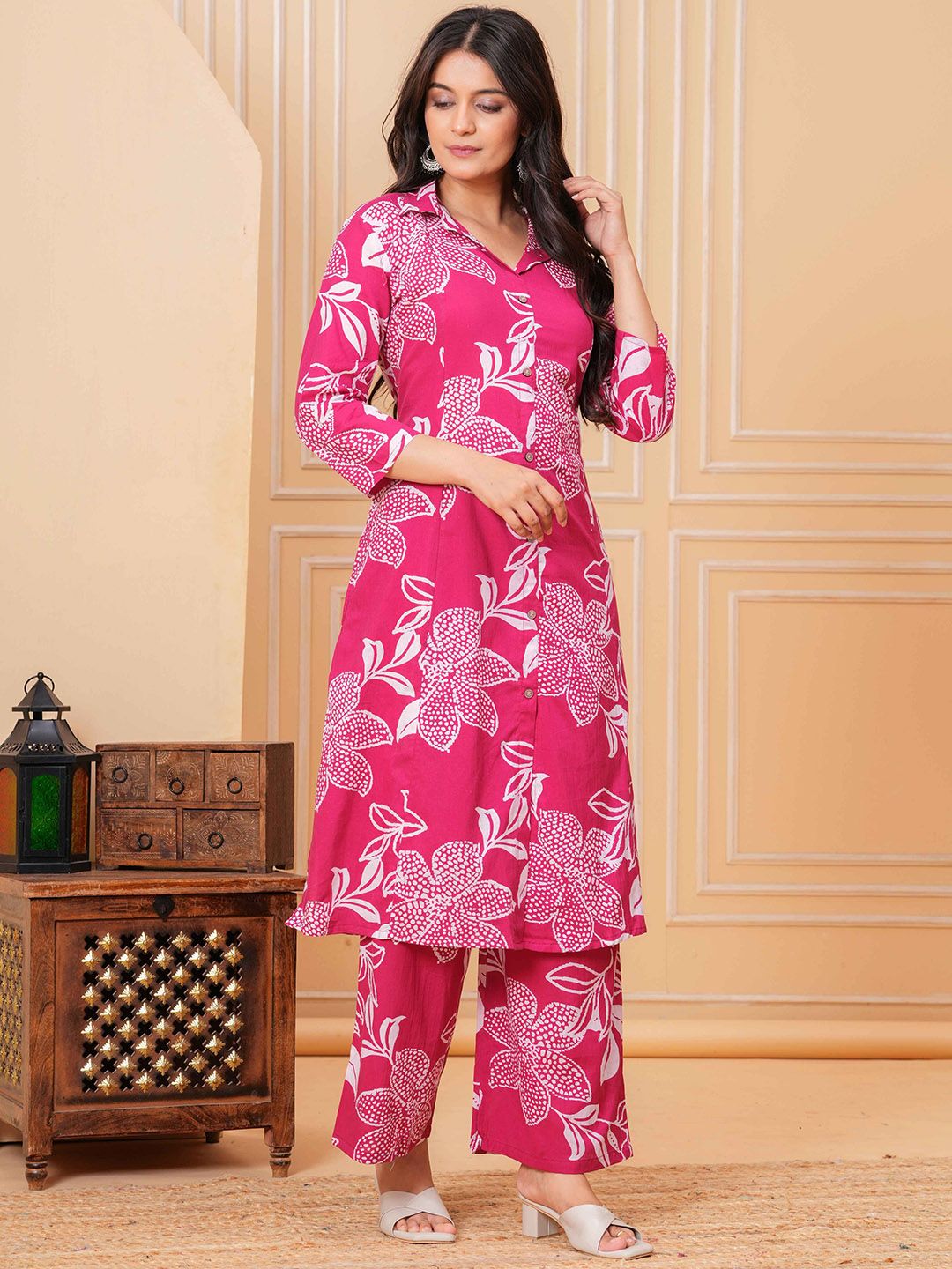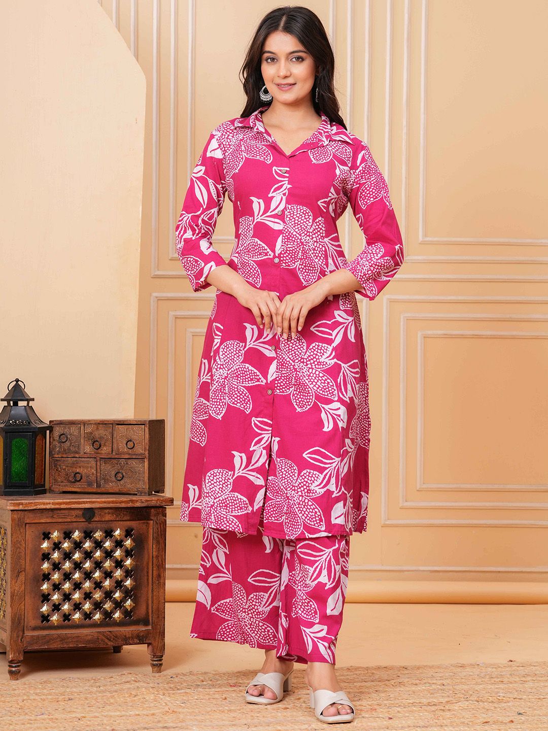 Bunkari Women Floral Printed Regular Kurta with Trousers Kurta Sets