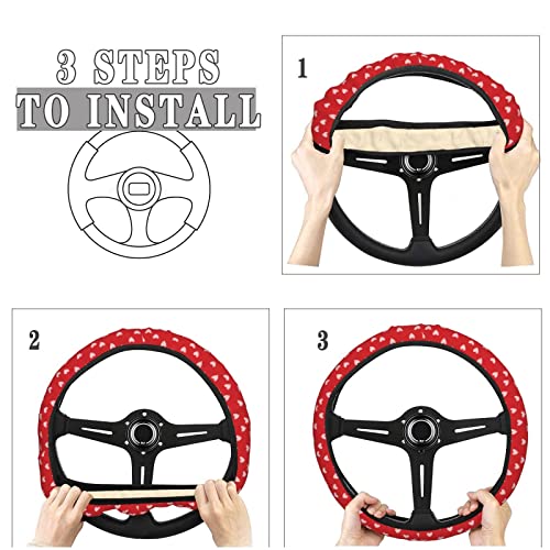 Buyidec Red Hearts Valentines Day Steering Wheel Covers Anti Slip Elasticity Car Accessories Steering Wheel Protector Universal 15 Inch for Cars SUV Vehicle Truck