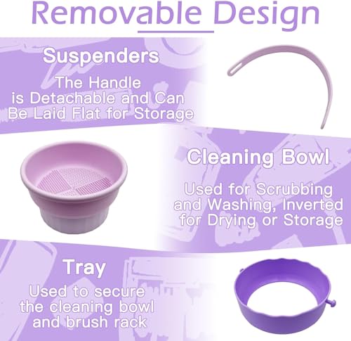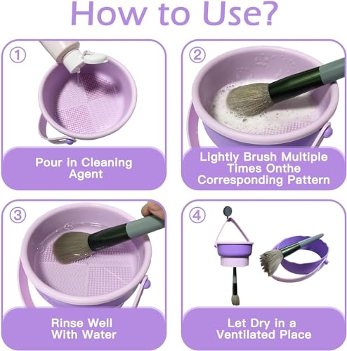 ?3 in 1 Silicone Makeup Cleaner Bowl? The makeup brush cleaner machine with Cleaning,Drying,Storage functions in one. The Removable Carrying Handle Cosmetic Brush Cleaning Bowl is easy to carry and storage. ?4 Cleaning Textures? Different textures can be used to clean different types of brushes appropriately.Portable cleaning tool suitable for effective cleaning of brushes, puffs, and sponges. ?Silicon Makeup Brush Cleaner Bowl? Made by environmentally friendly and healthy silicone material, no damage to brushes.The makeup brush cleaner mat bowl is easy to use, separable and washable. ?Easy to Use? Pour cleaning solution water into the brush cleaning bowl. Gently scrub the brush on the cleaning pad. Insert the brush into the mesh hole at the bottom of the bowl, hang the cleaning bowl to dry the makeup brush. ?Women's Best Gift Choice? This makeup brush cleaning bowl is the best choice for women's gifts,Whether the other party is a makeup enthusiast or a beginner,This multifunctional makeup cleaning bowl is the best choice for Girlfriend, Mom, Grandma on Valentine's Day, Birthday etc.