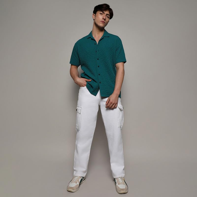 Campus Sutra Men's Polyester Shirt for Casual Wear, Short Sleeve, Spread Collar, Button Closure, Regular Fit, Shirt Crafted with Comfort Fit for Casual Wear