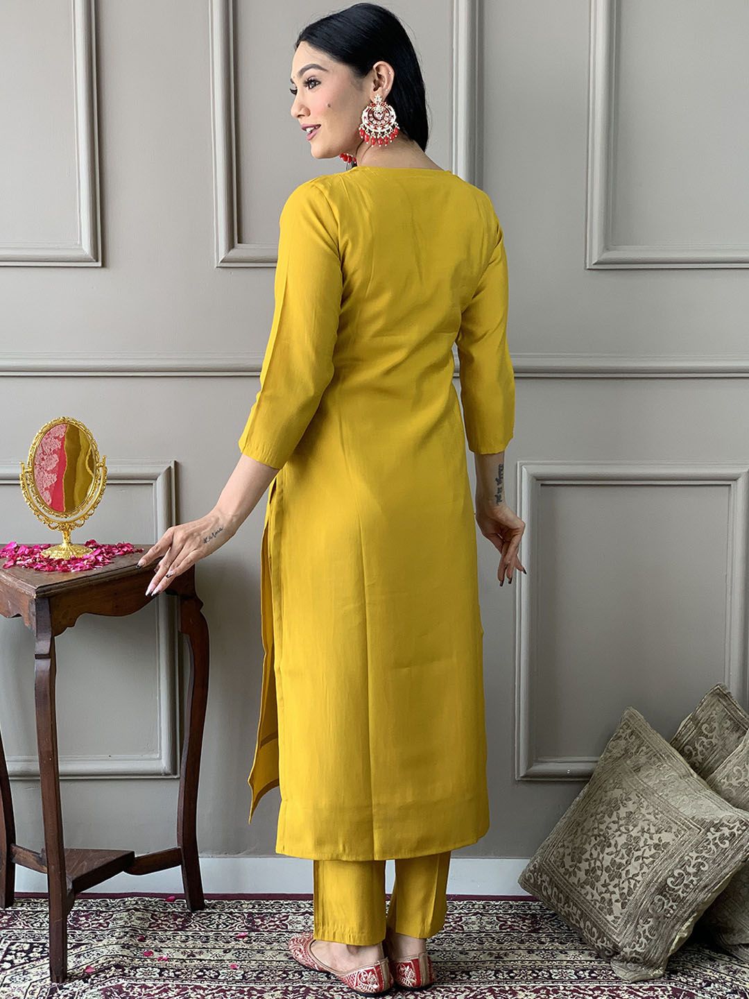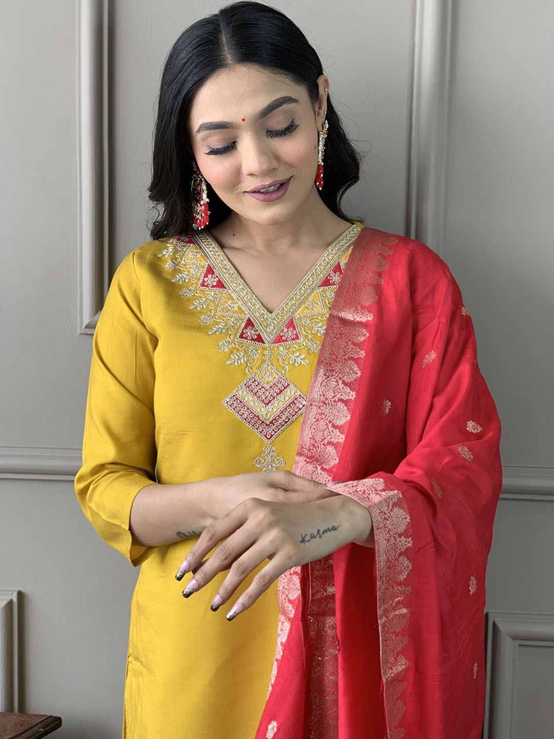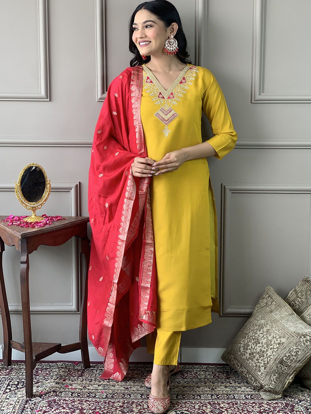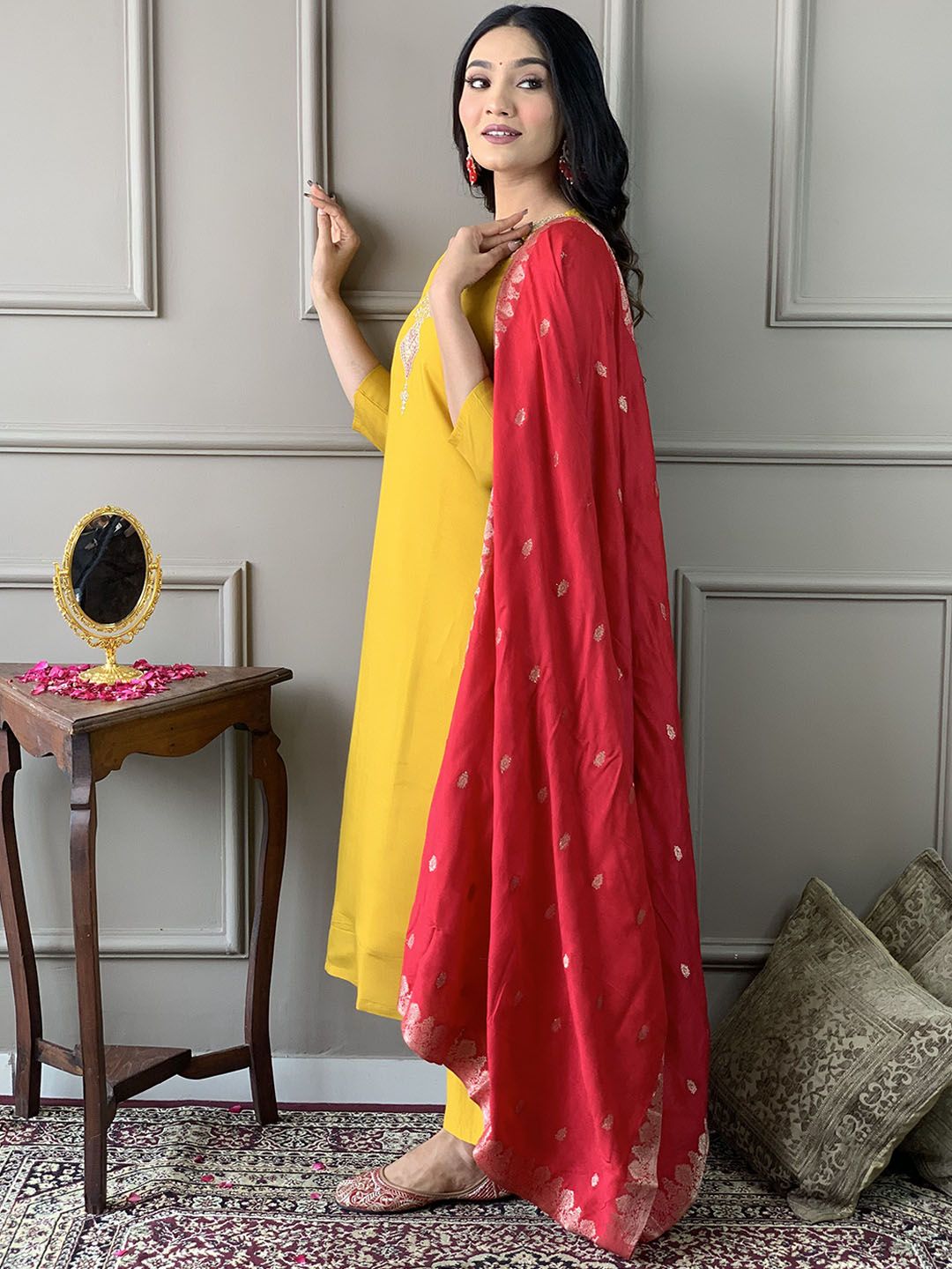 CANBIA Embroidered Thread Work Regular Kurta with Trousers & Dupatta