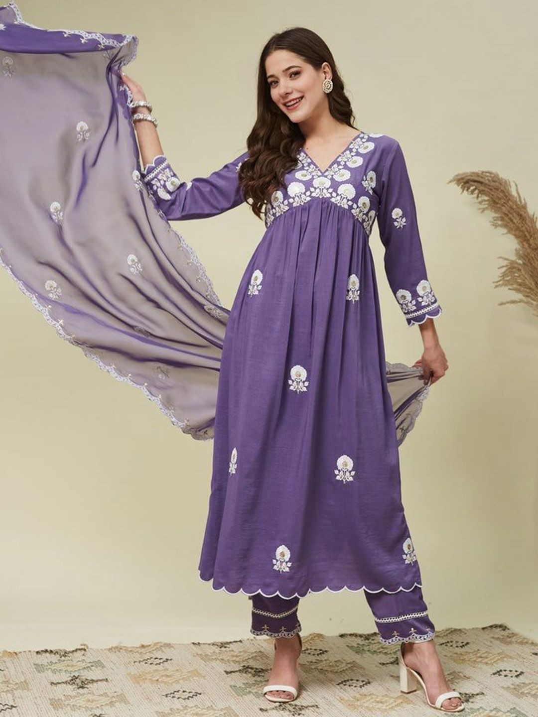 Buy this stylish CANBIA Floral Embroidered Empire V-Neck Thread Work Anarkali Kurta With Trousers & Dupatta at Marincart Nepal. This product offers great quality and value. Perfect for those looking for the latest trends in fashion. Get yours now at unbeatable prices.
