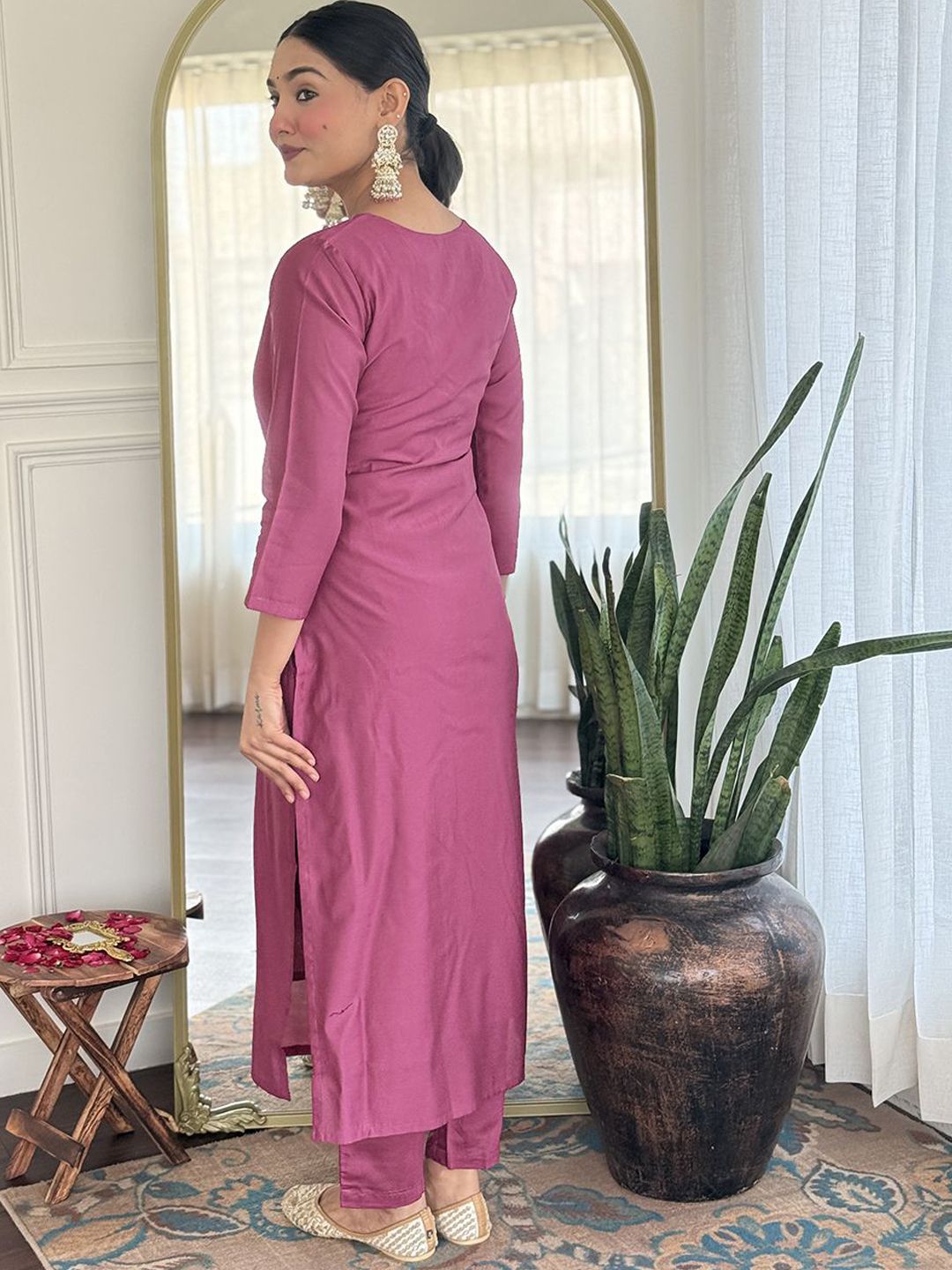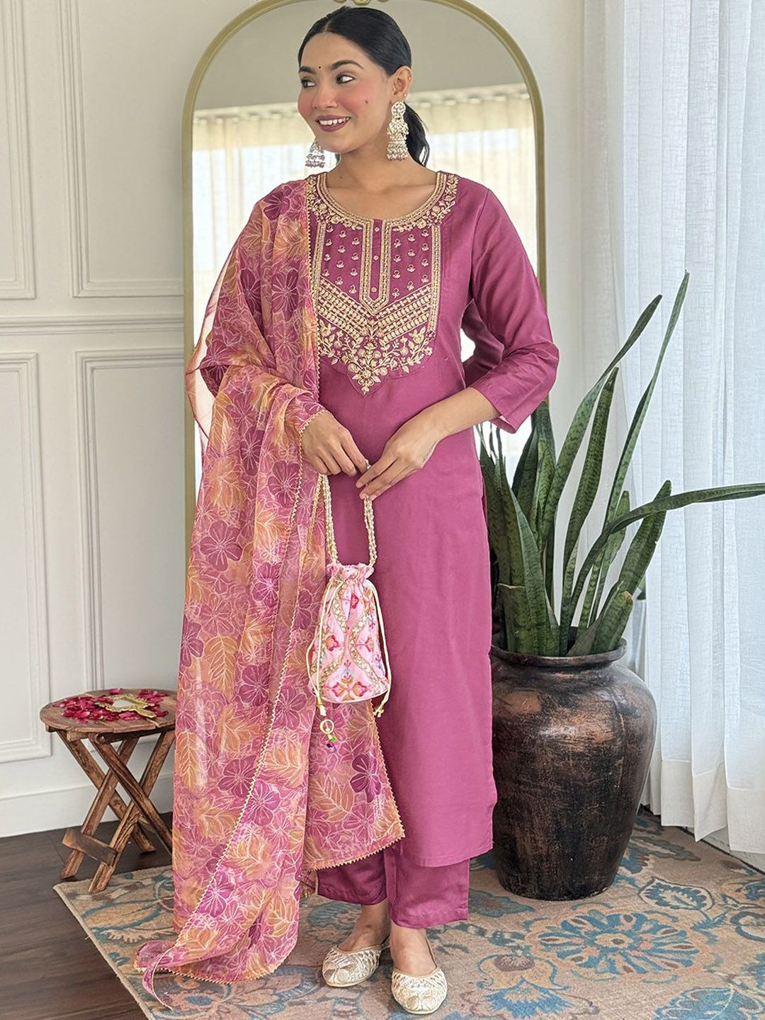 CANBIA Floral Yoke Design Round Neck Straight Kurta with Trousers & With Dupatta