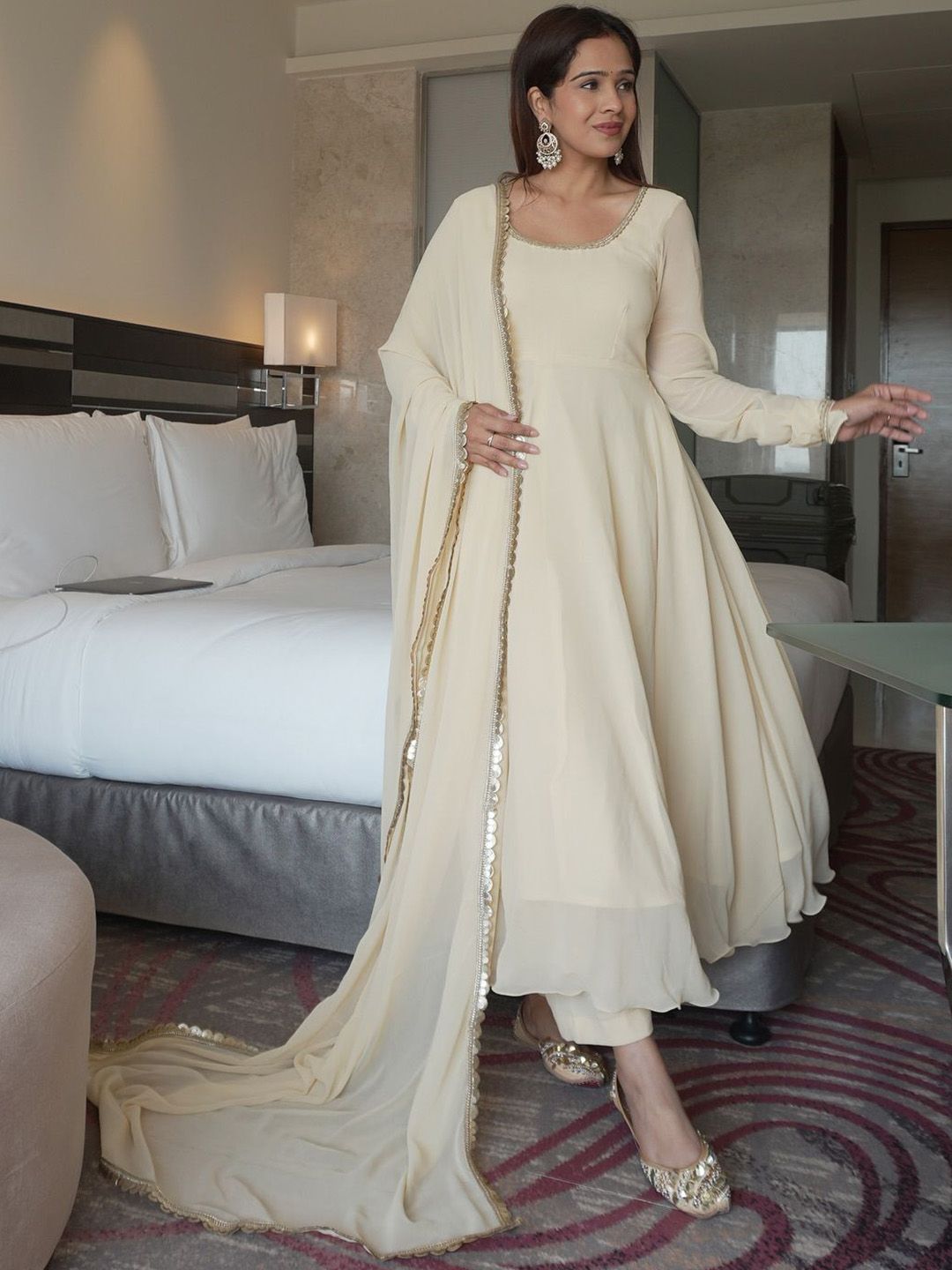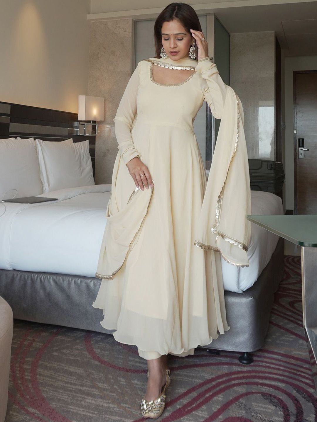 CANBIA Women Angrakha Sequinned Kurta with Trousers & Dupatta