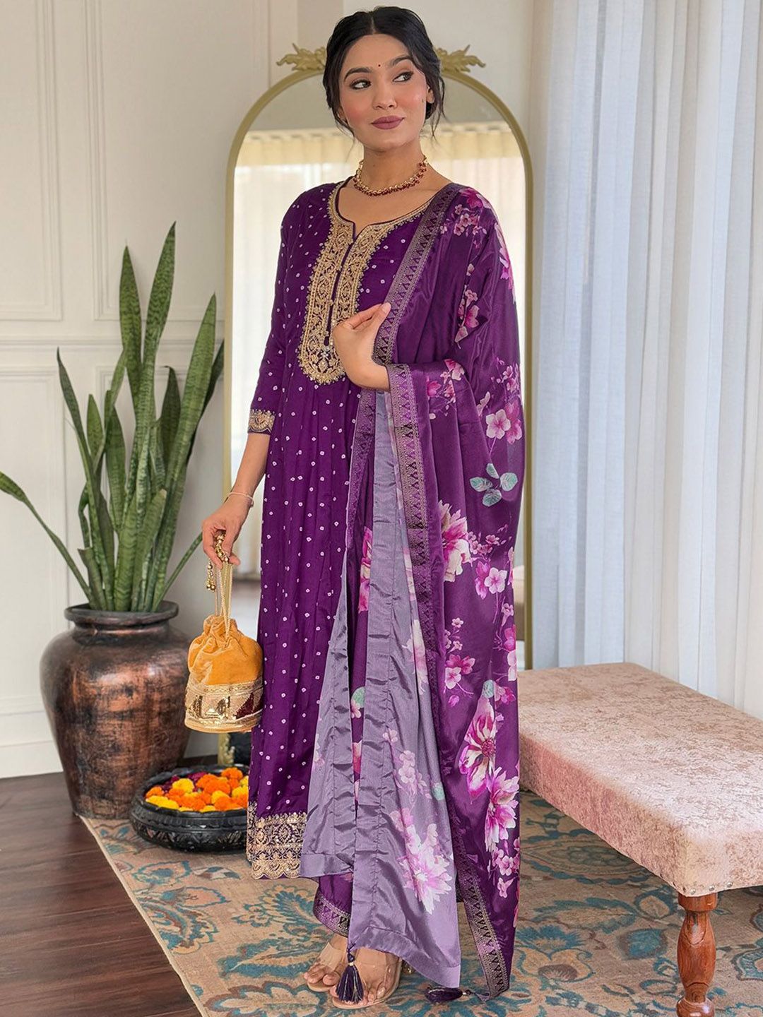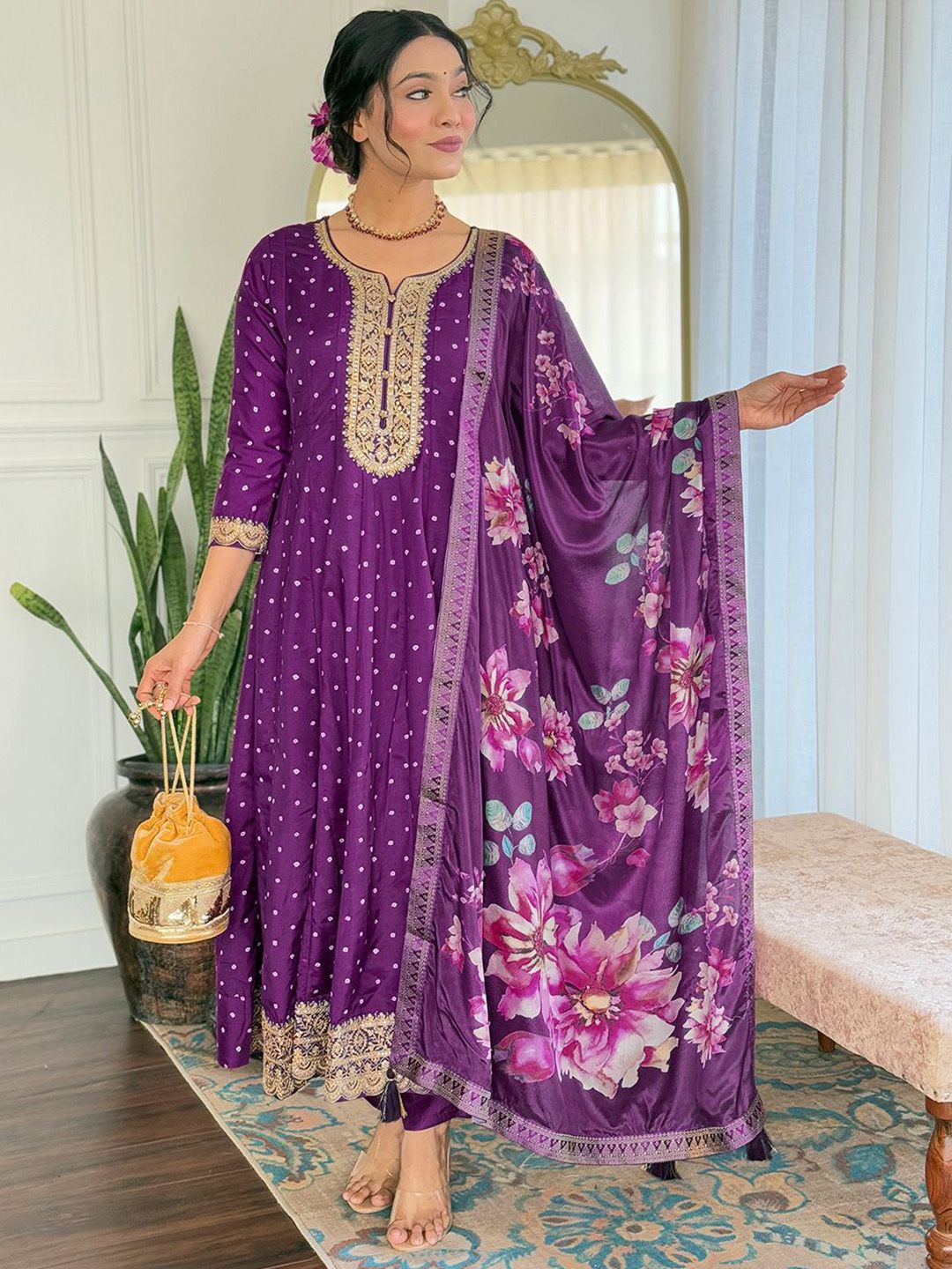 CANBIA Women Ethnic Motifs Embroidered Regular Kurta & Trousers & Dupatta
