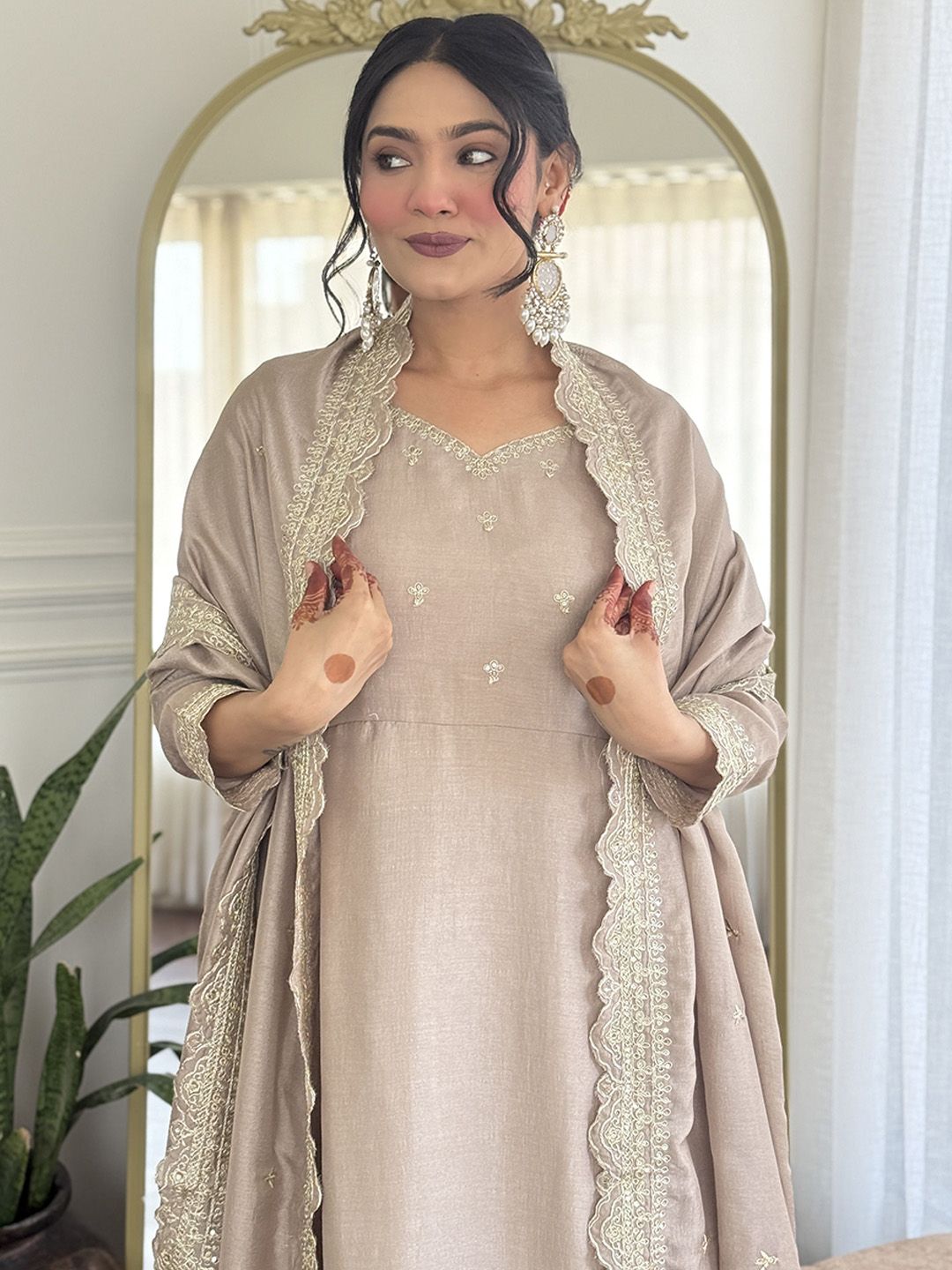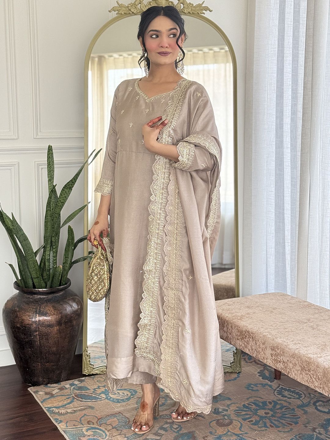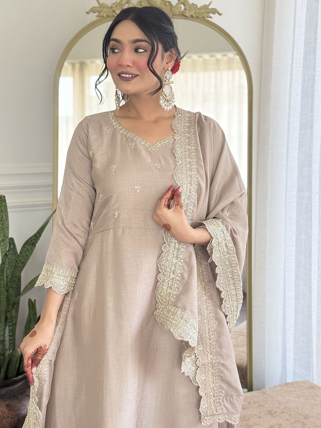 CANBIA Women Ethnic Motifs Embroidered Regular Kurta with Trousers & Dupatta