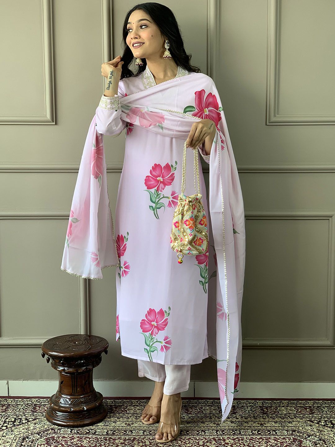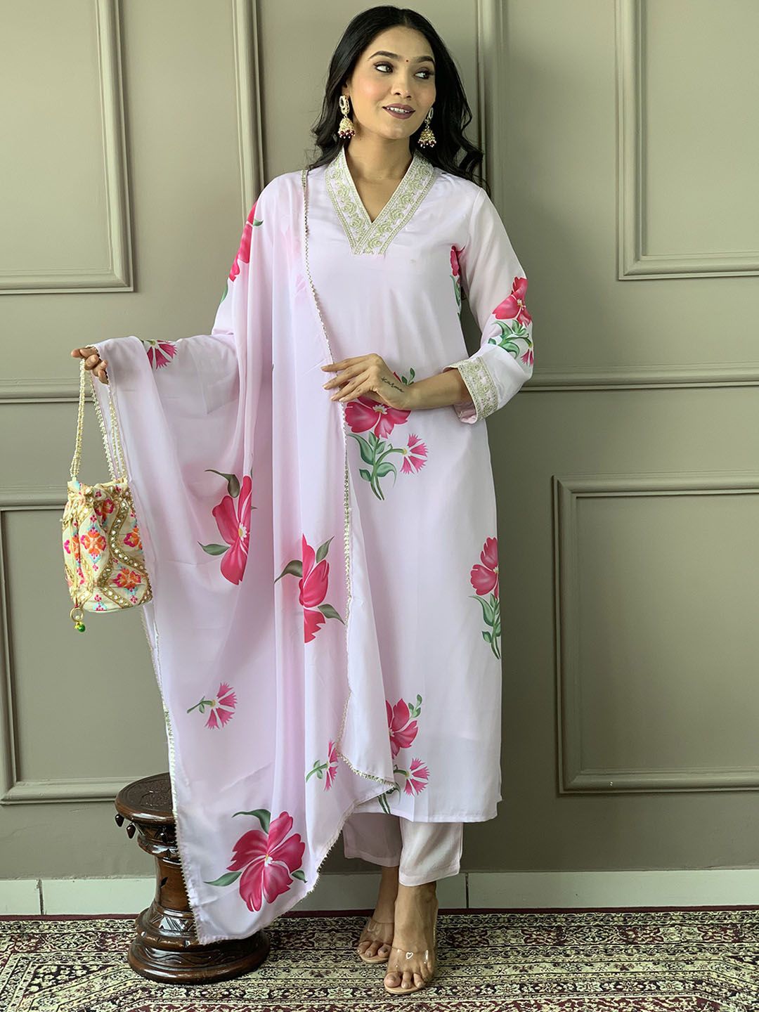 CANBIA Women Ethnic Motifs Printed Kurta, Trousers With Dupatta