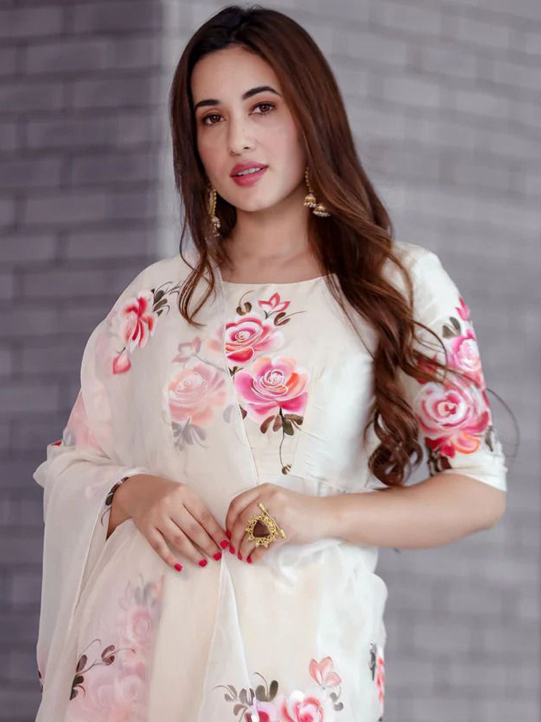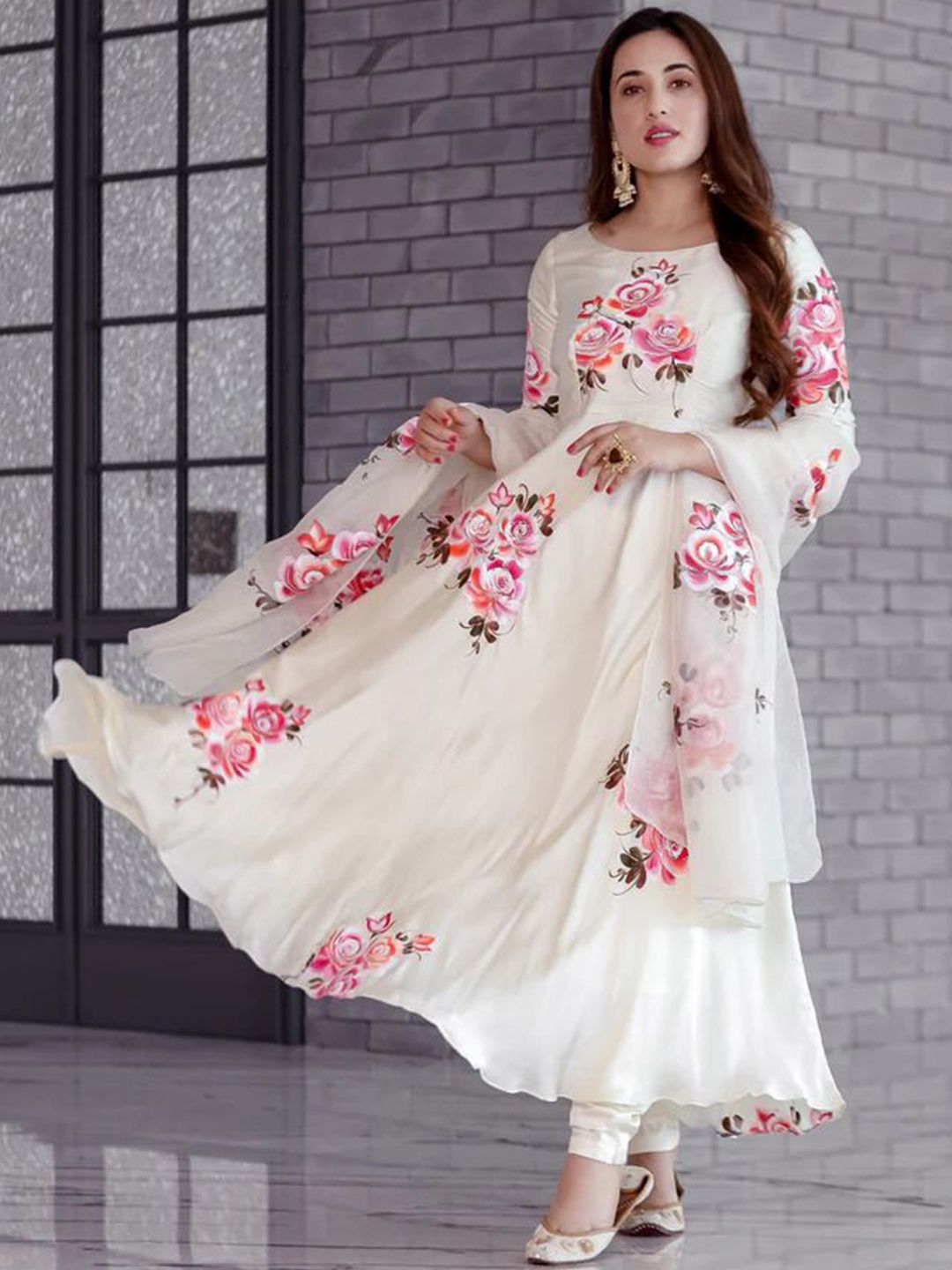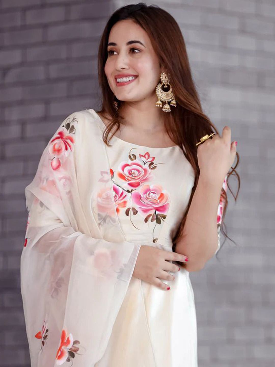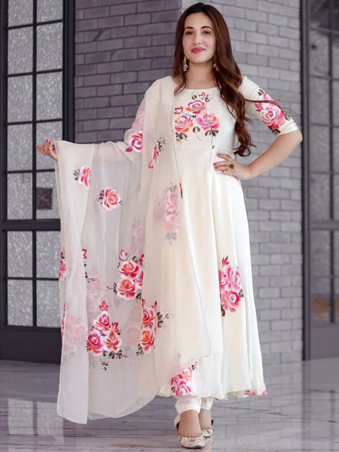 CANBIA Women Floral Print Anarkali Kurta with Trousers & Dupatta
