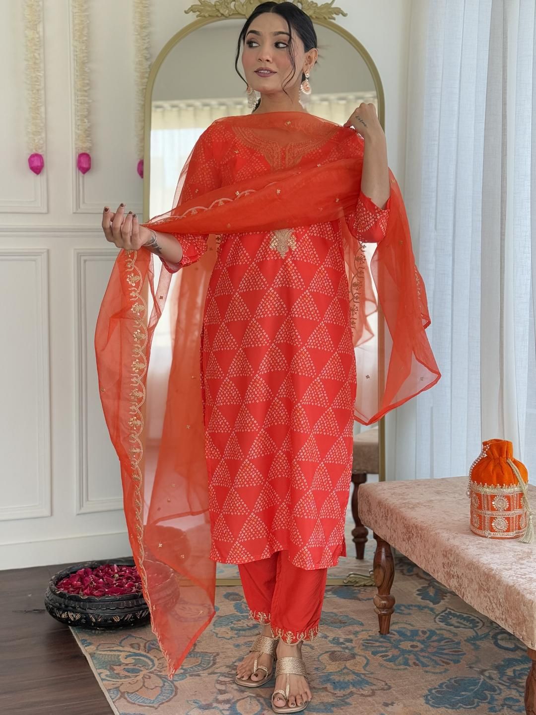 Buy this stylish CaniBani Ethnic Motifs Printed Sequinned Straight Kurta With Trousers & Dupatta at Marincart Nepal. This product offers great quality and value. Perfect for those looking for the latest trends in fashion. Get yours now at unbeatable prices.