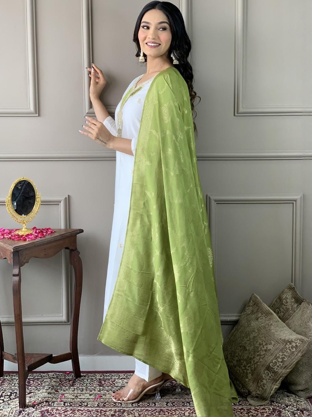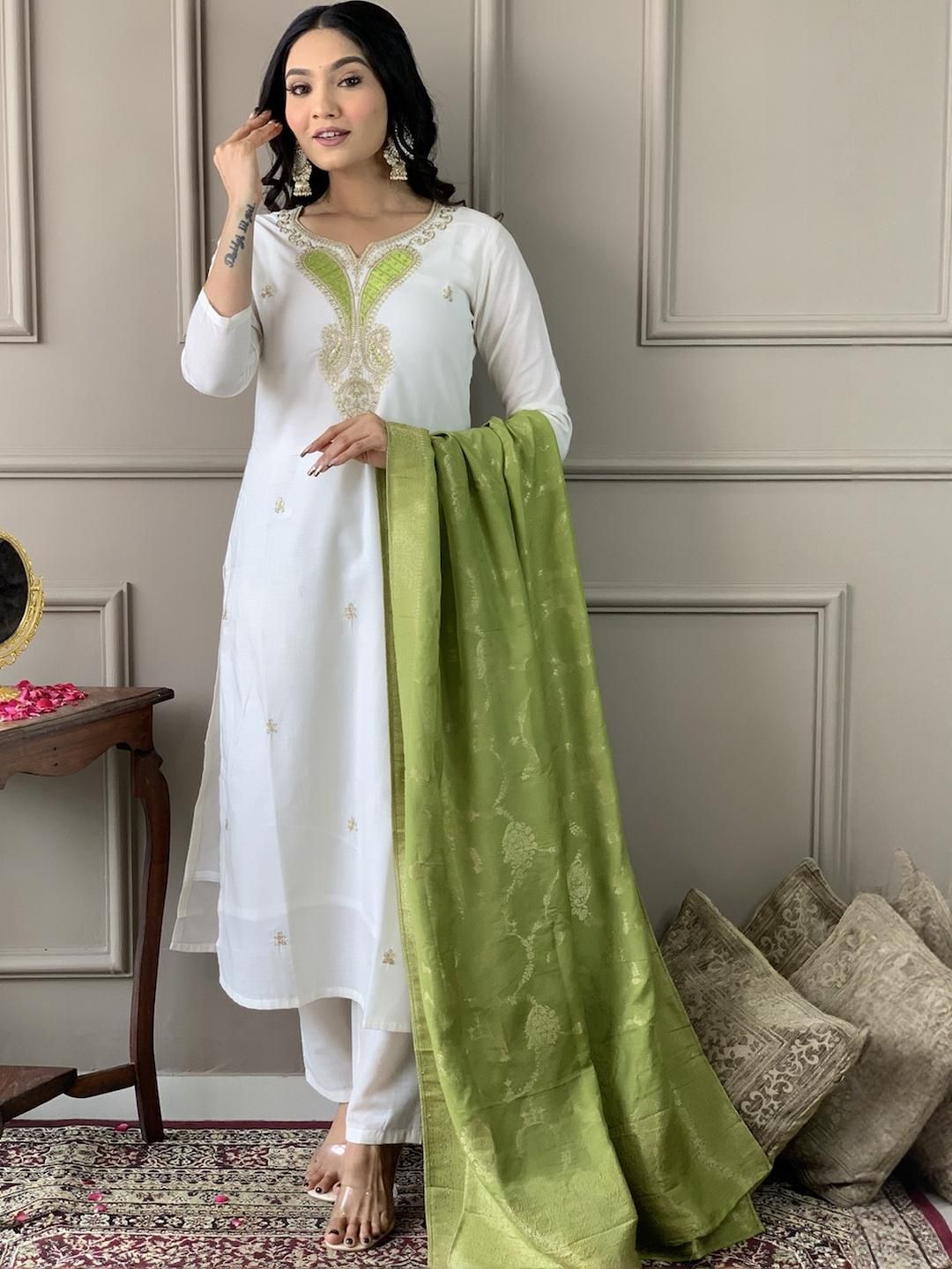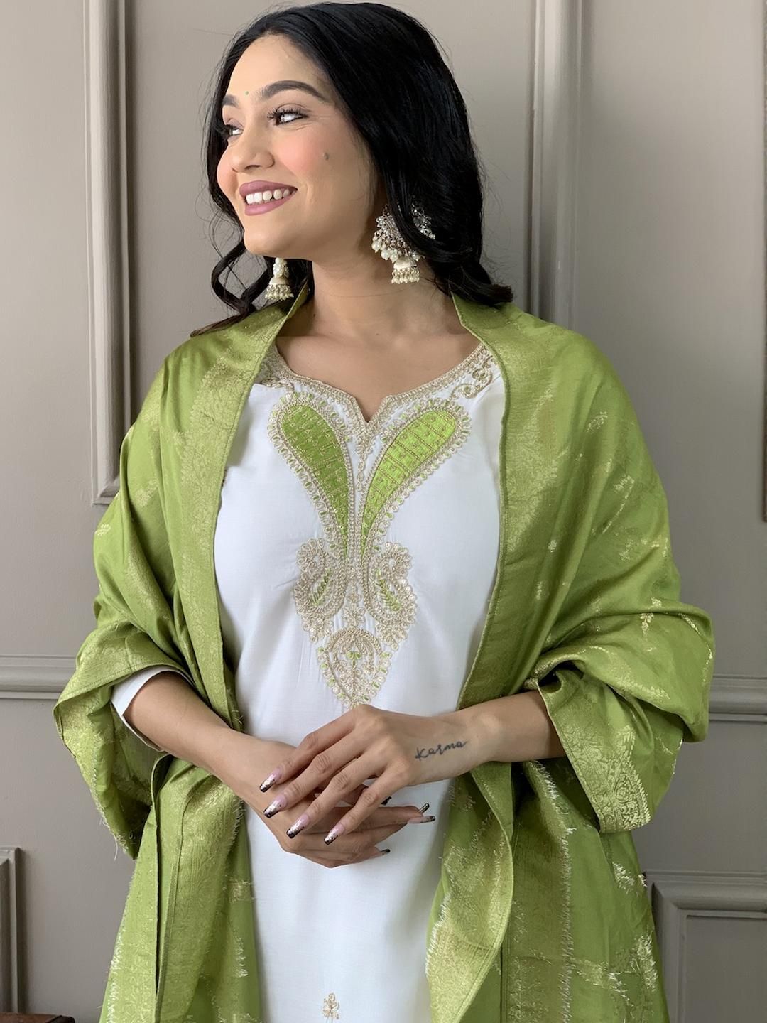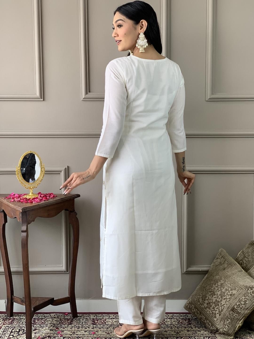 CaniBani White Silk Blend Kurta Sets