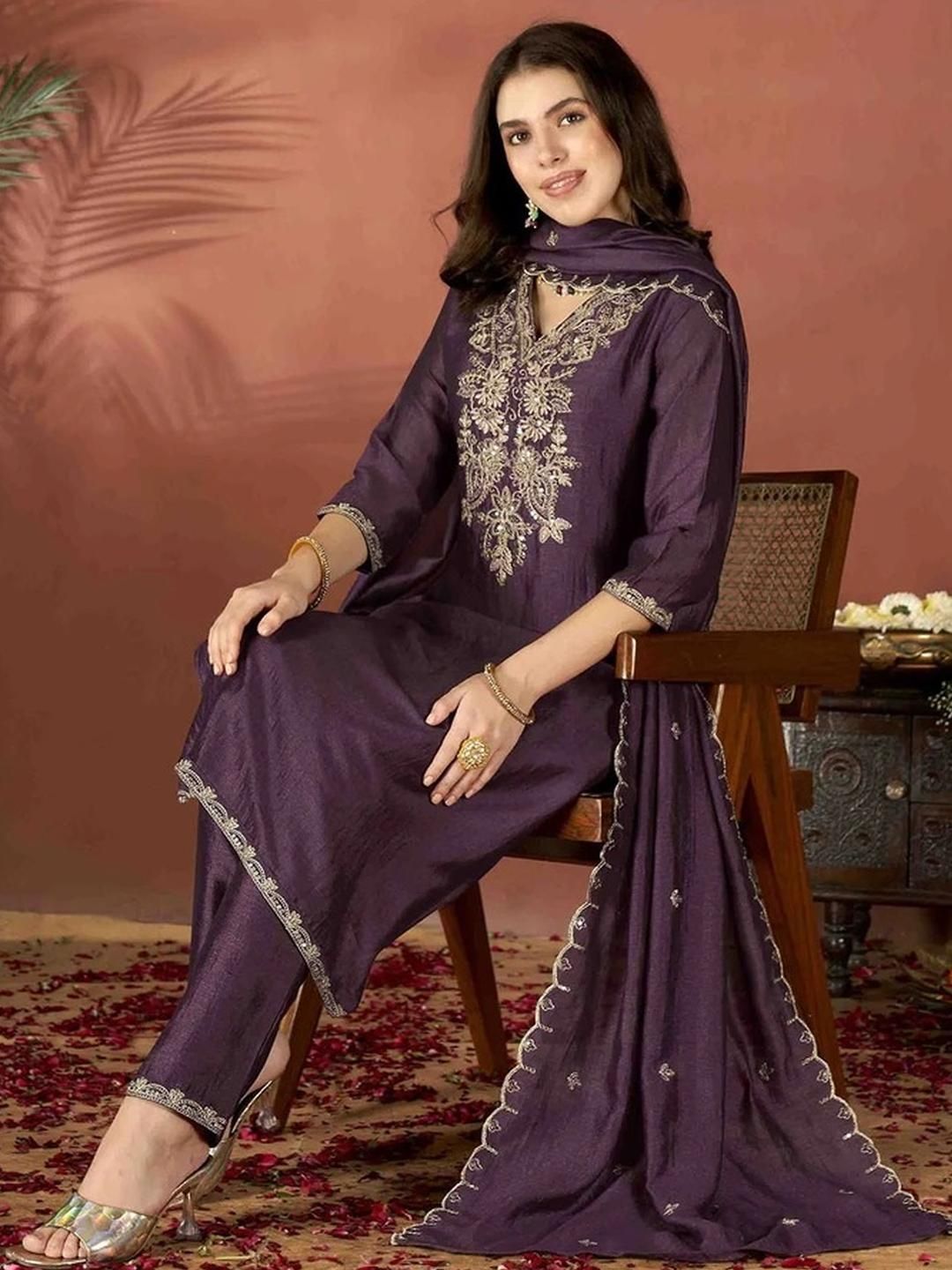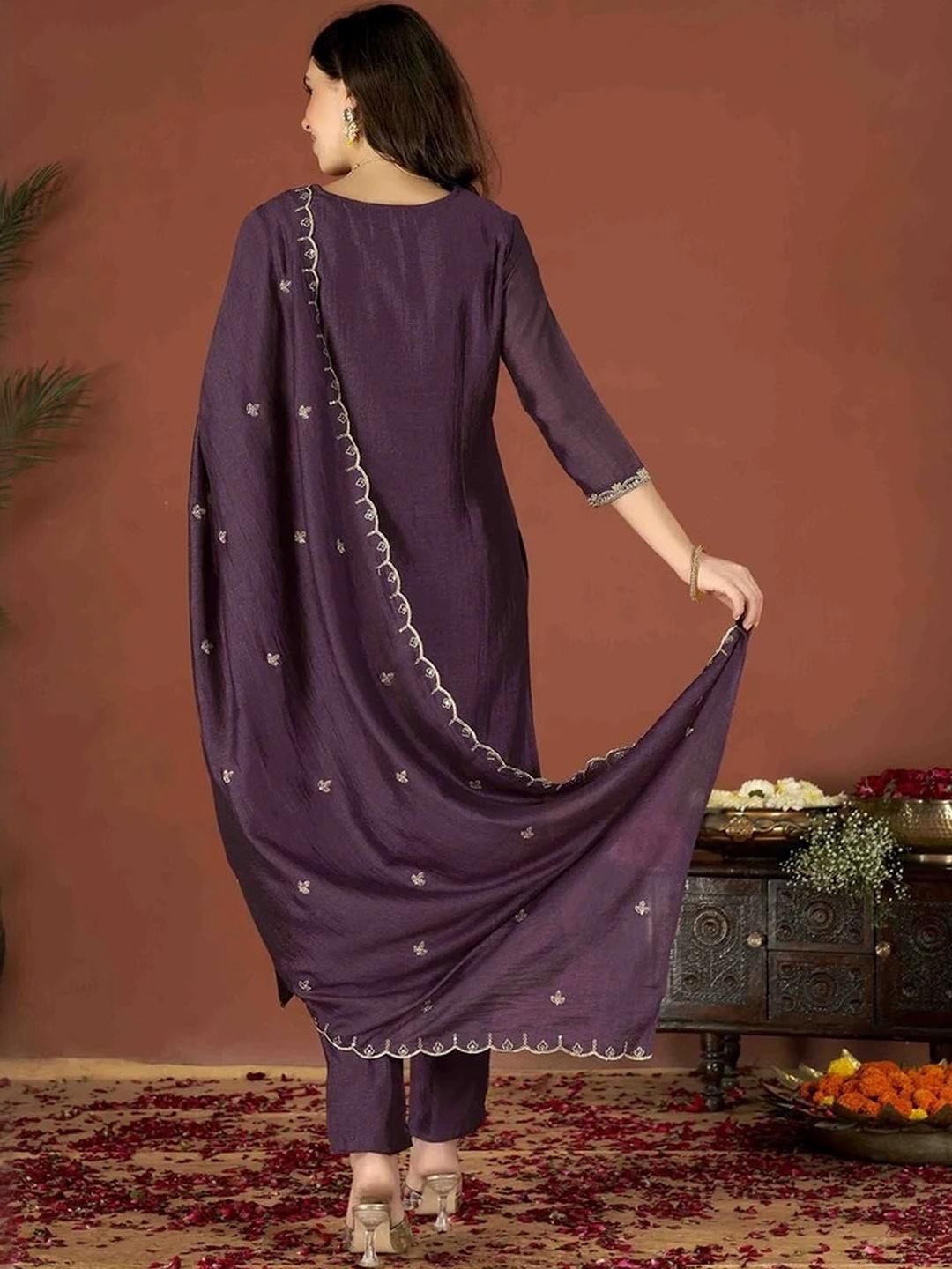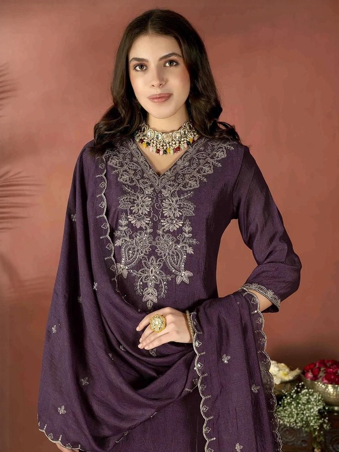 CaniBani Women Ethnic Motifs Embroidered Regular Kurta with Trousers & Dupatta