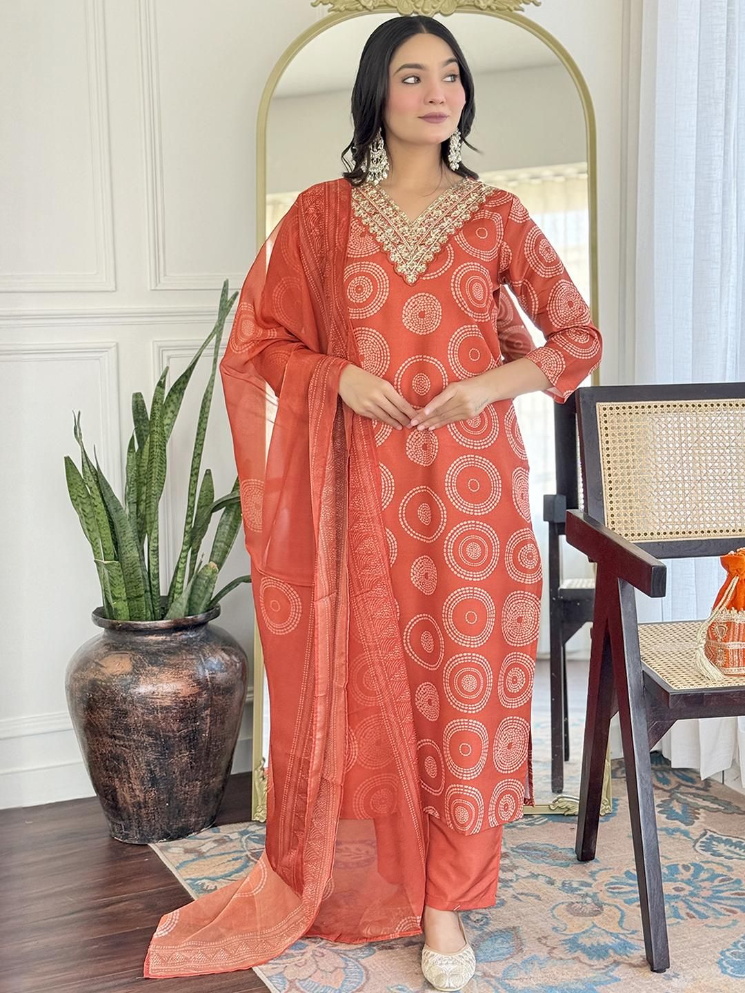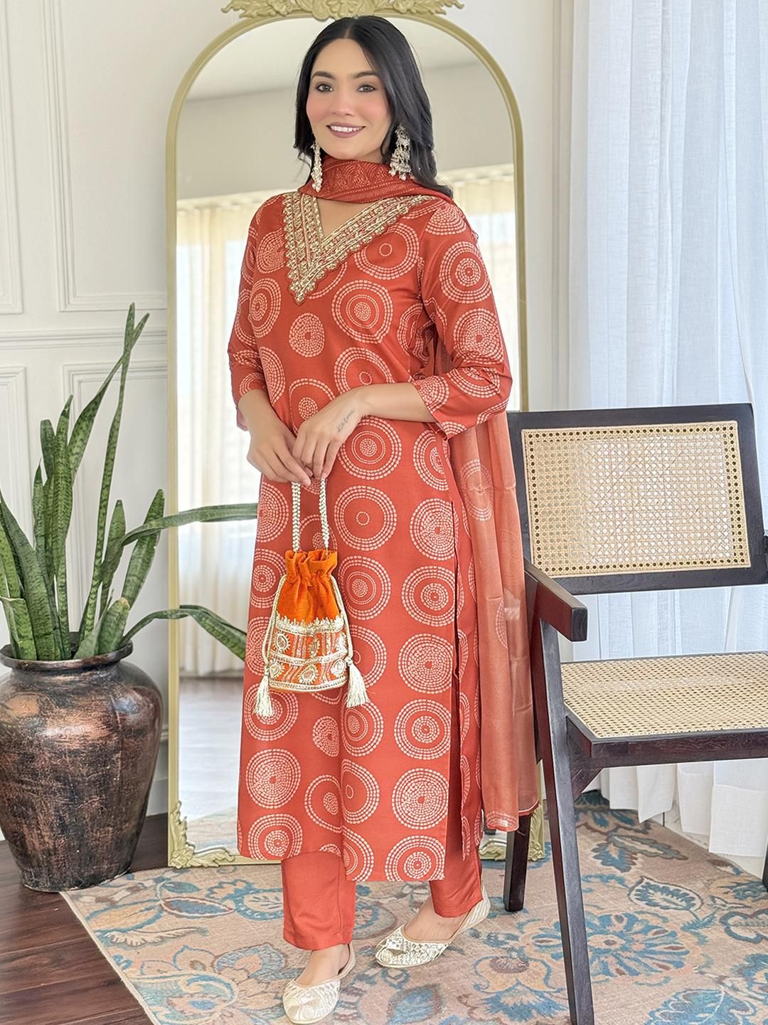CaniBani Women Ethnic Motifs Printed Regular Kurta with Trousers & With Dupatta