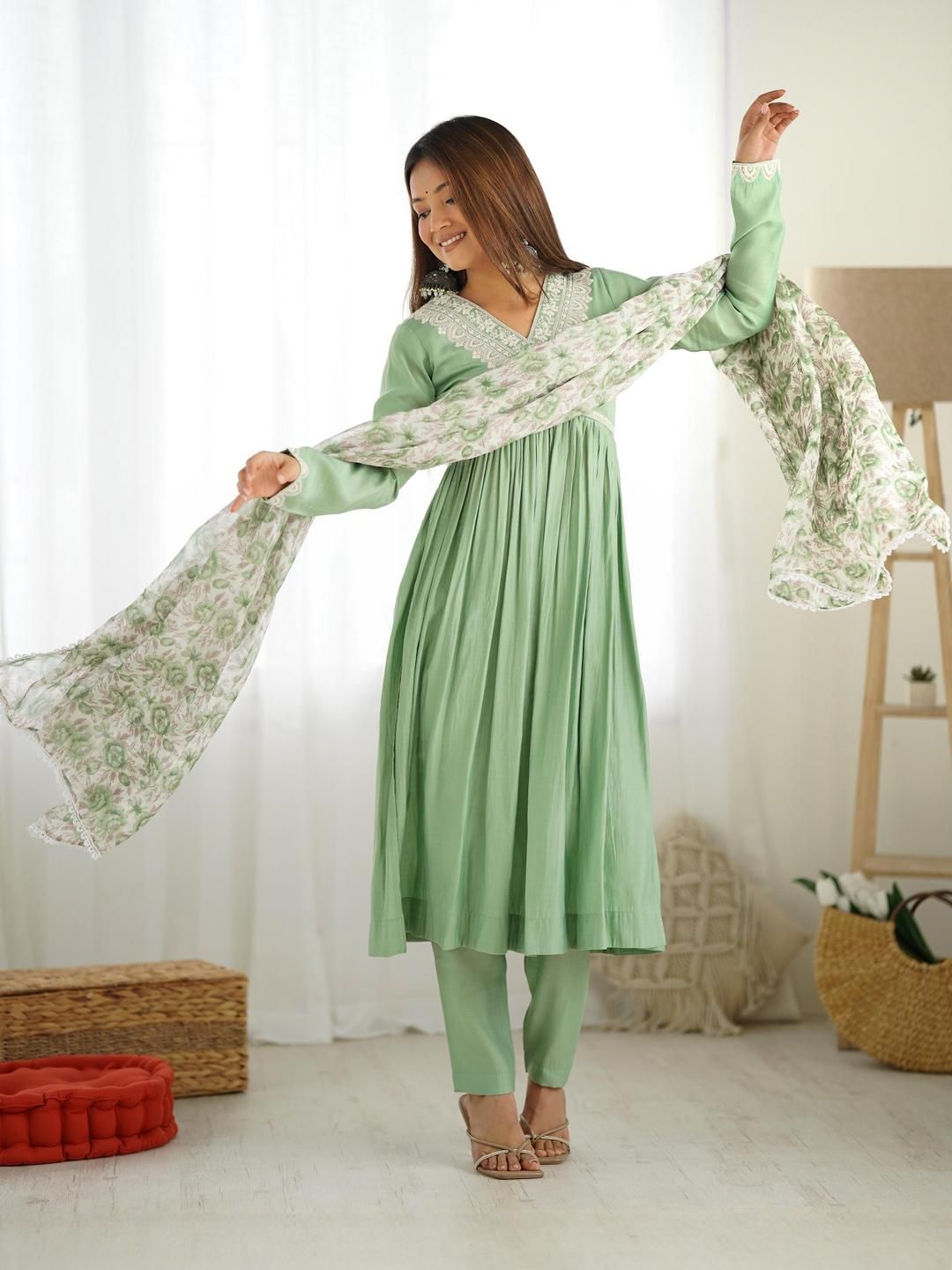 CaniBani Women Ethnic Motifs Regular Kurta with Trousers & With Dupatta