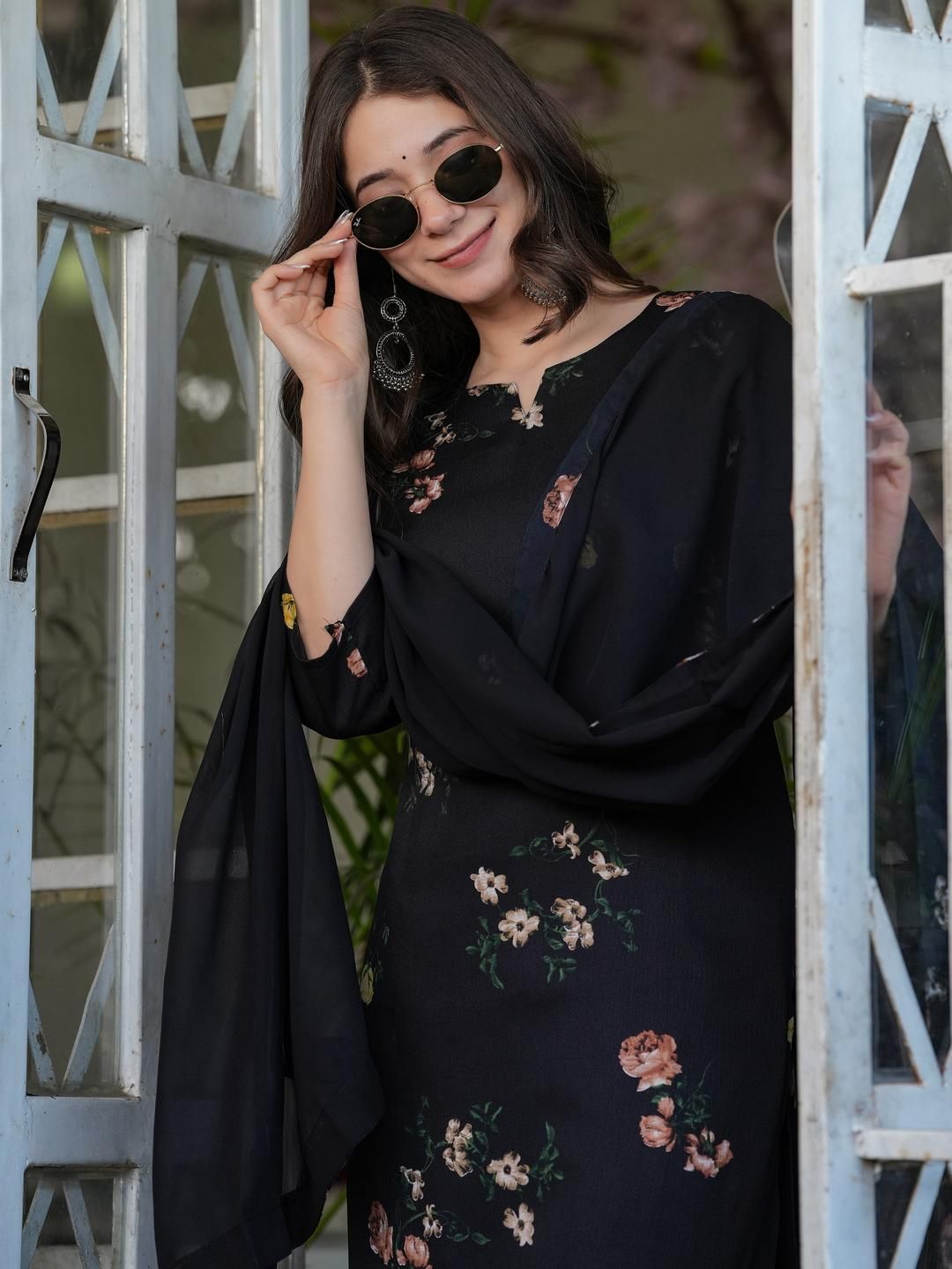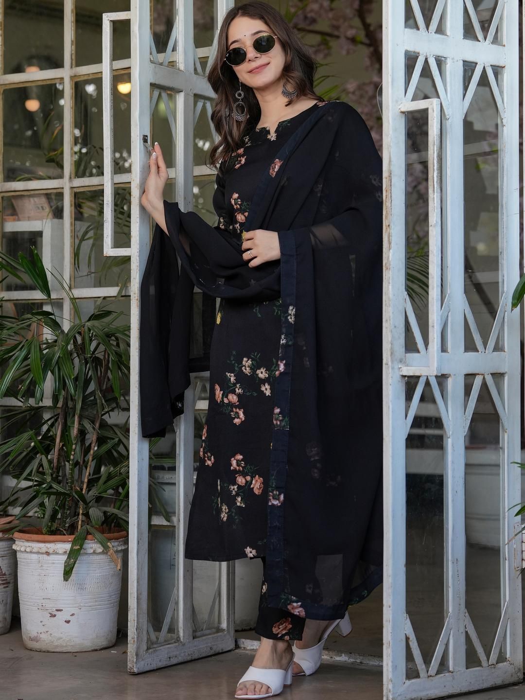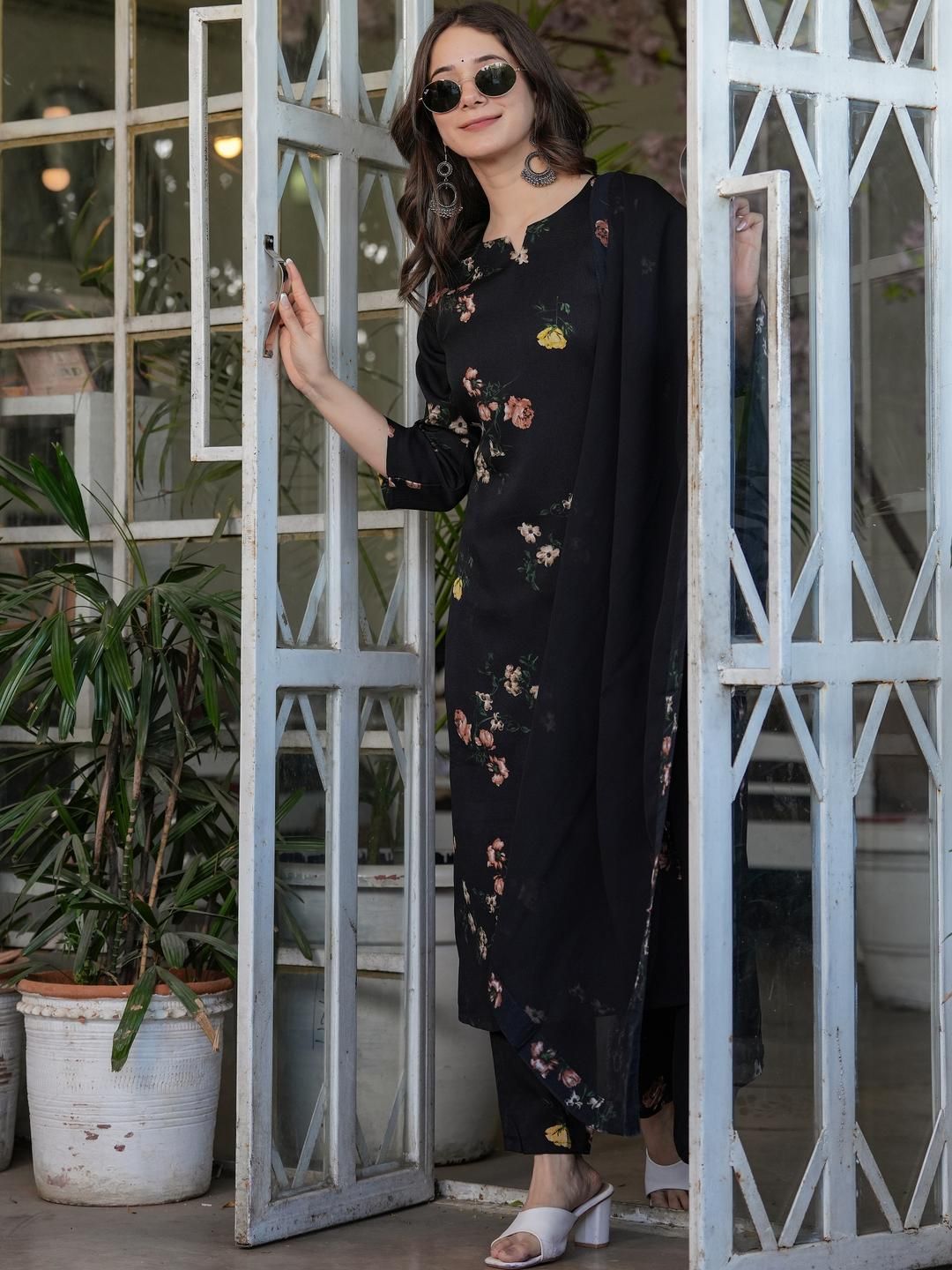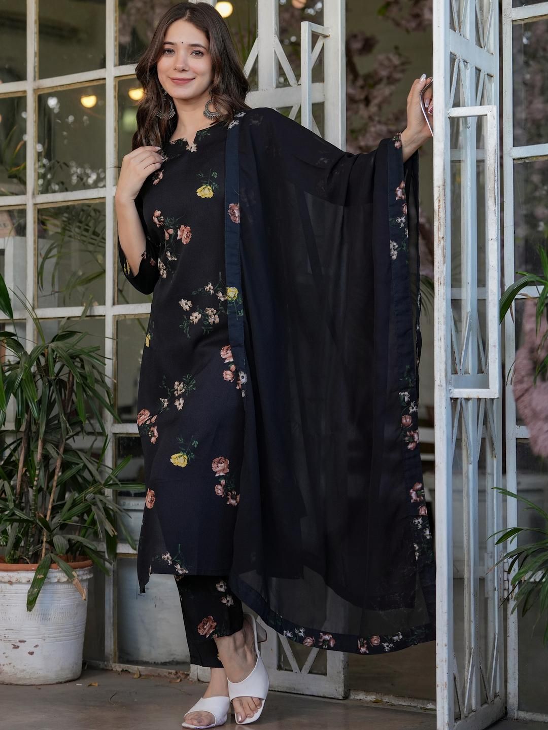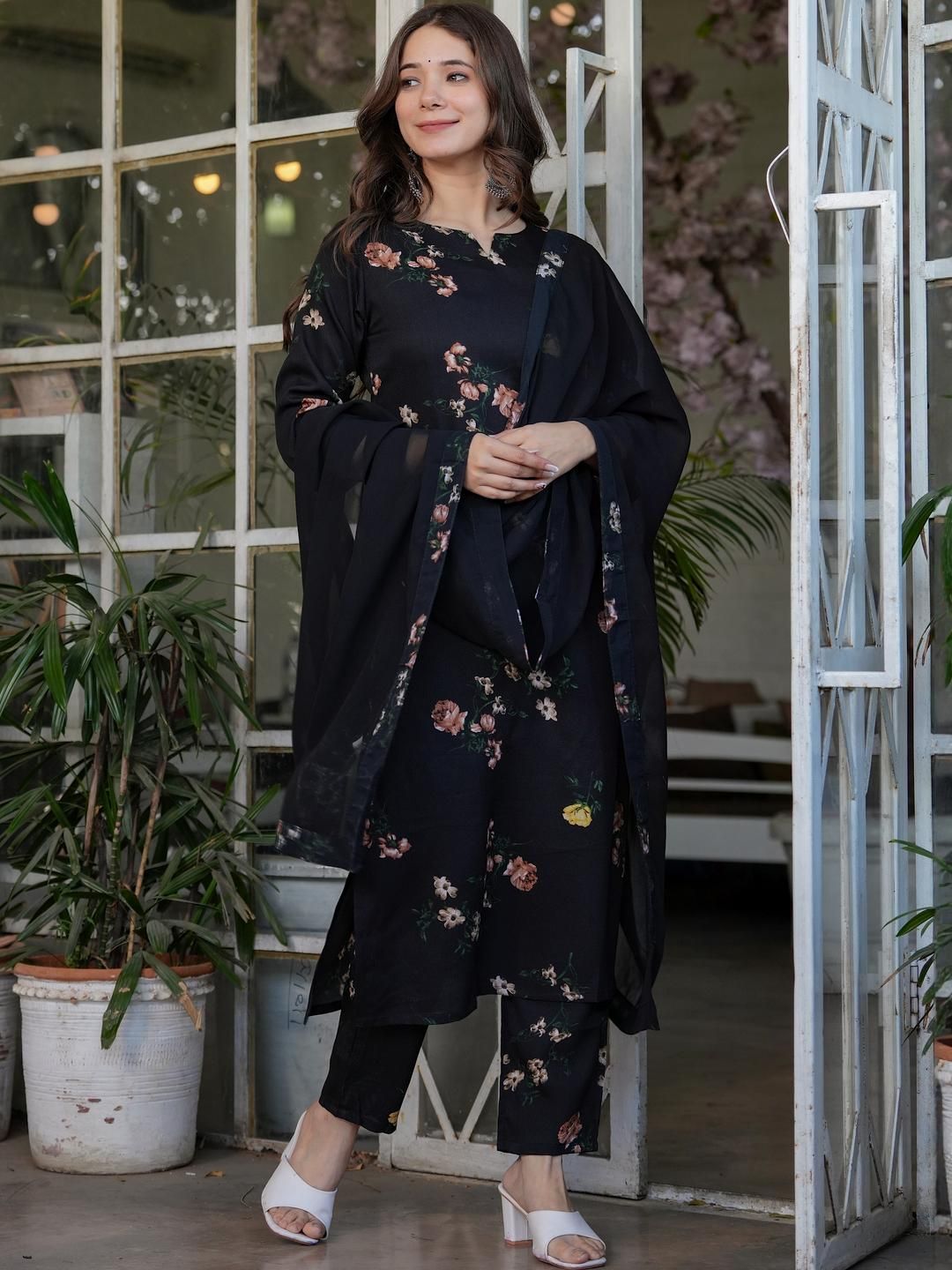 CaniBani Women Floral Printed Straight Kurta With Trousers & Dupatta