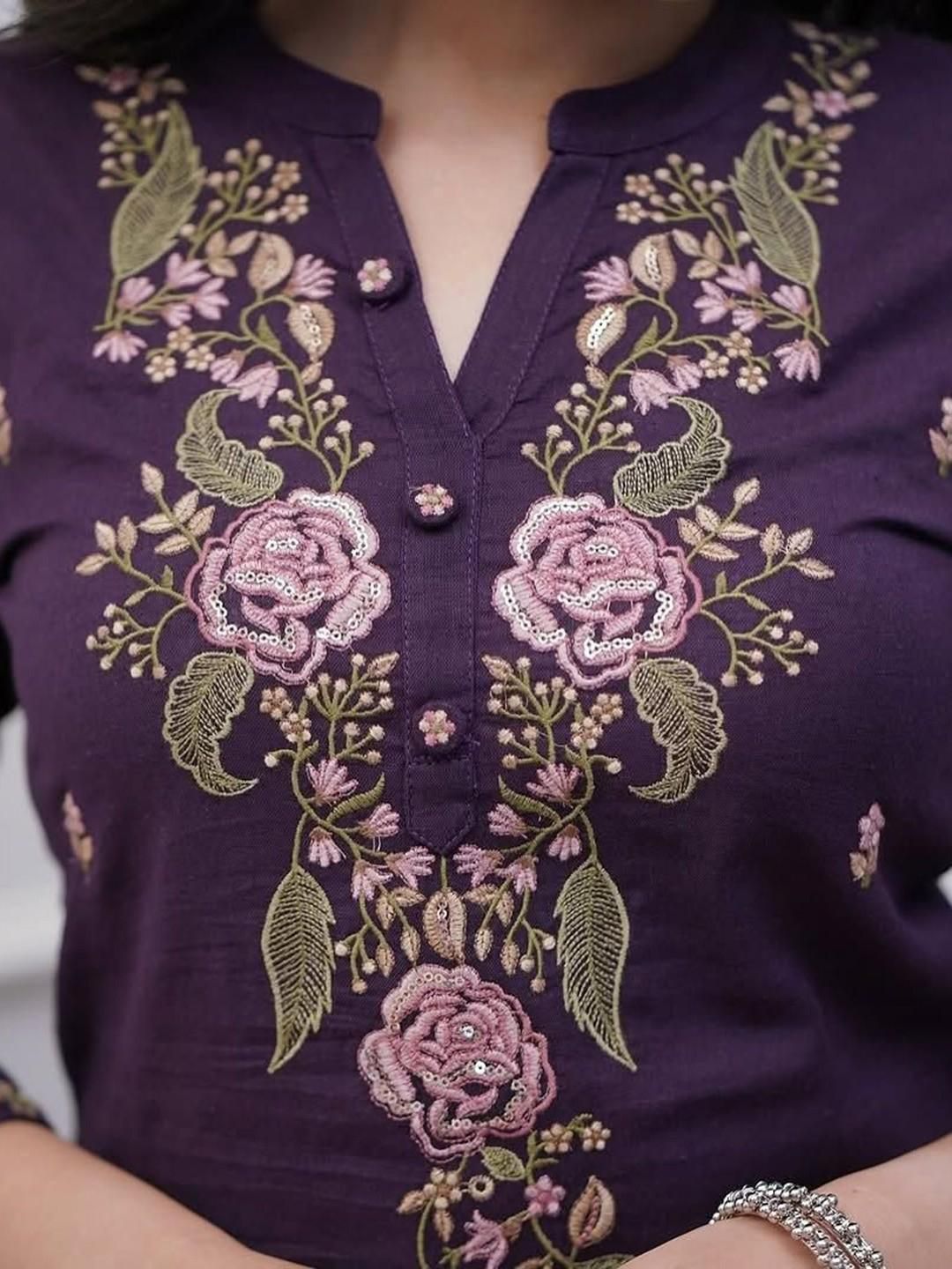 CaniBani Women Magenta Embroidered Viscose Rayon Kurta & Trousers With Dupatta