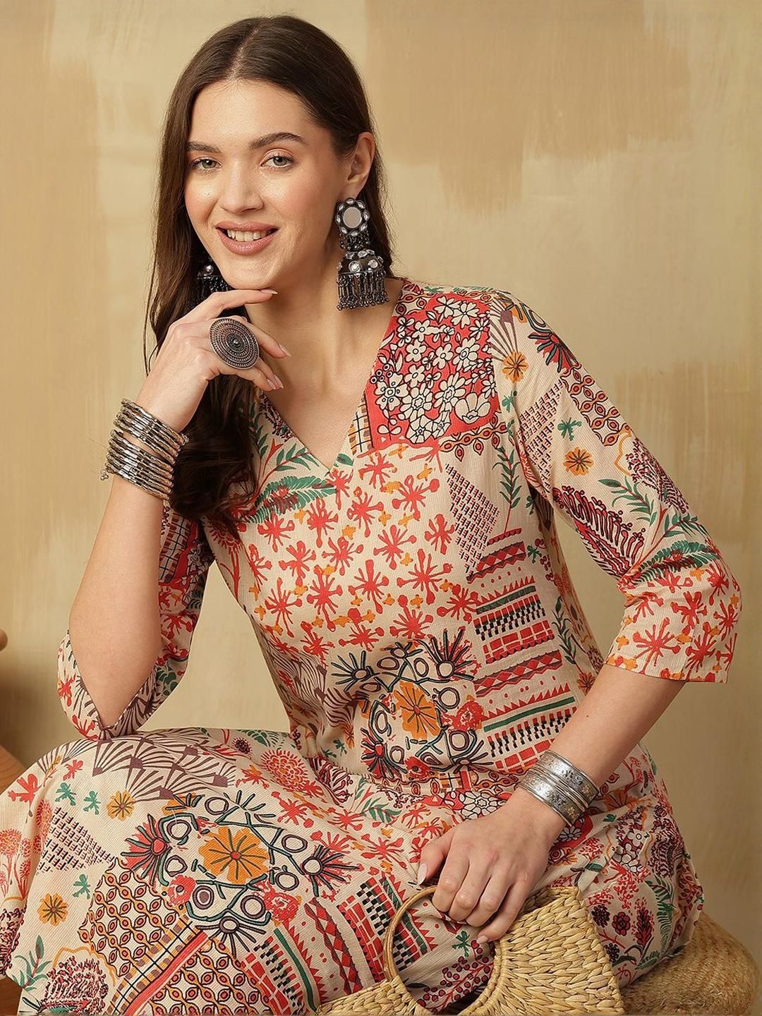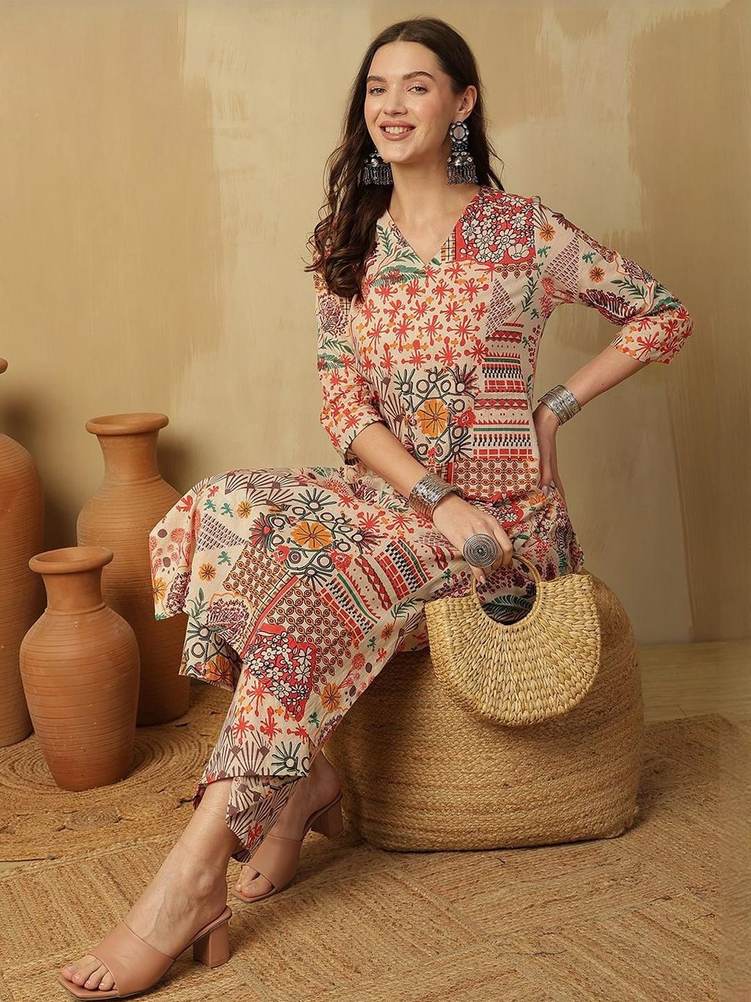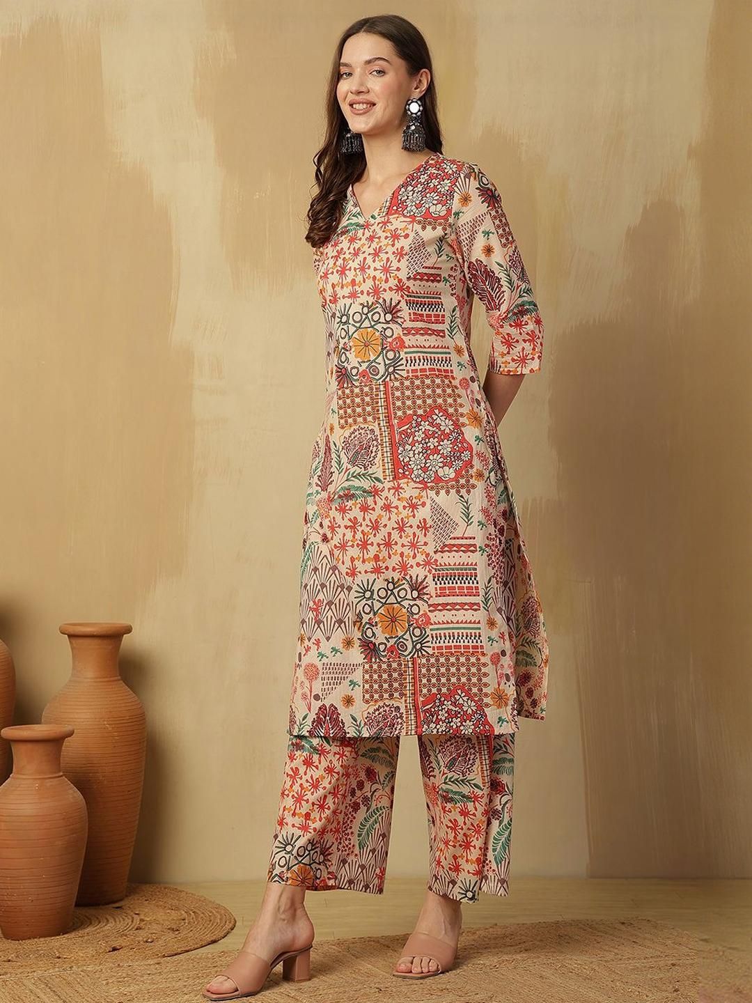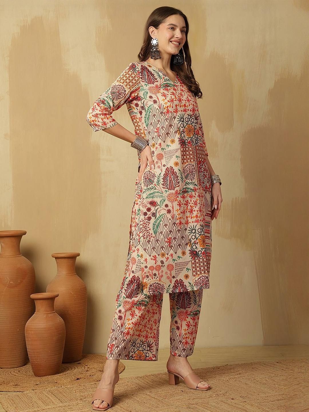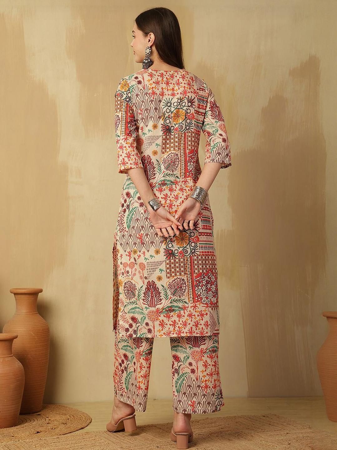 CaniBani Women Multi Printed Pure Cotton Kurta & Trousers With Dupatta