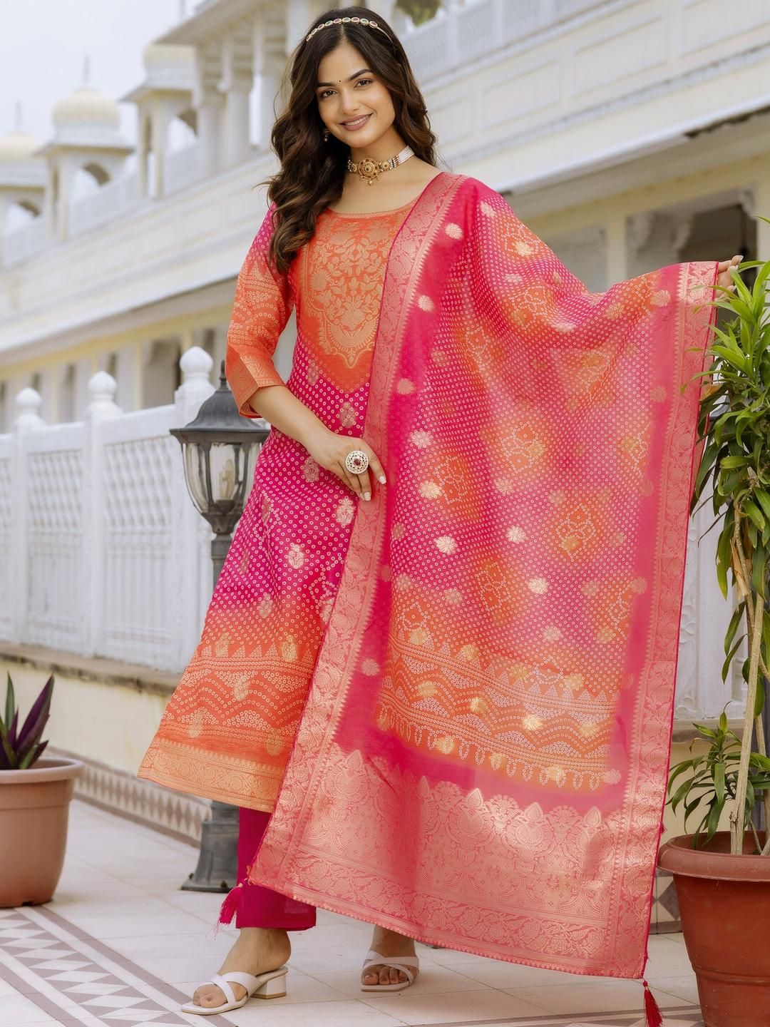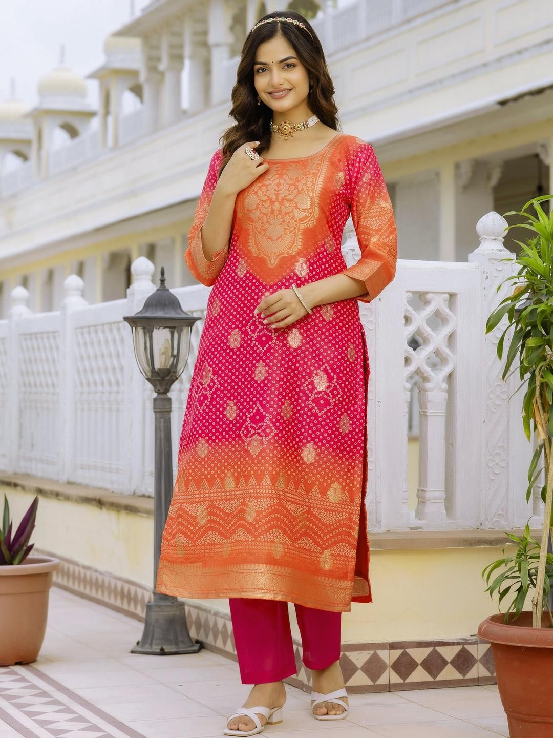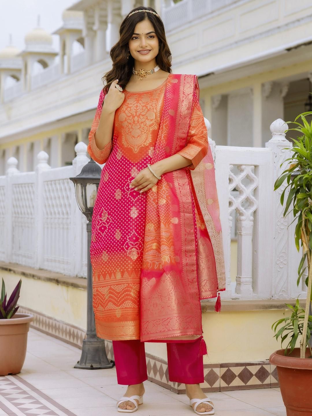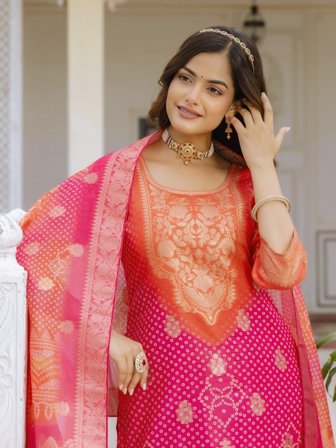 CaniBani Women Orange Chanderi Silk Kurta Sets
