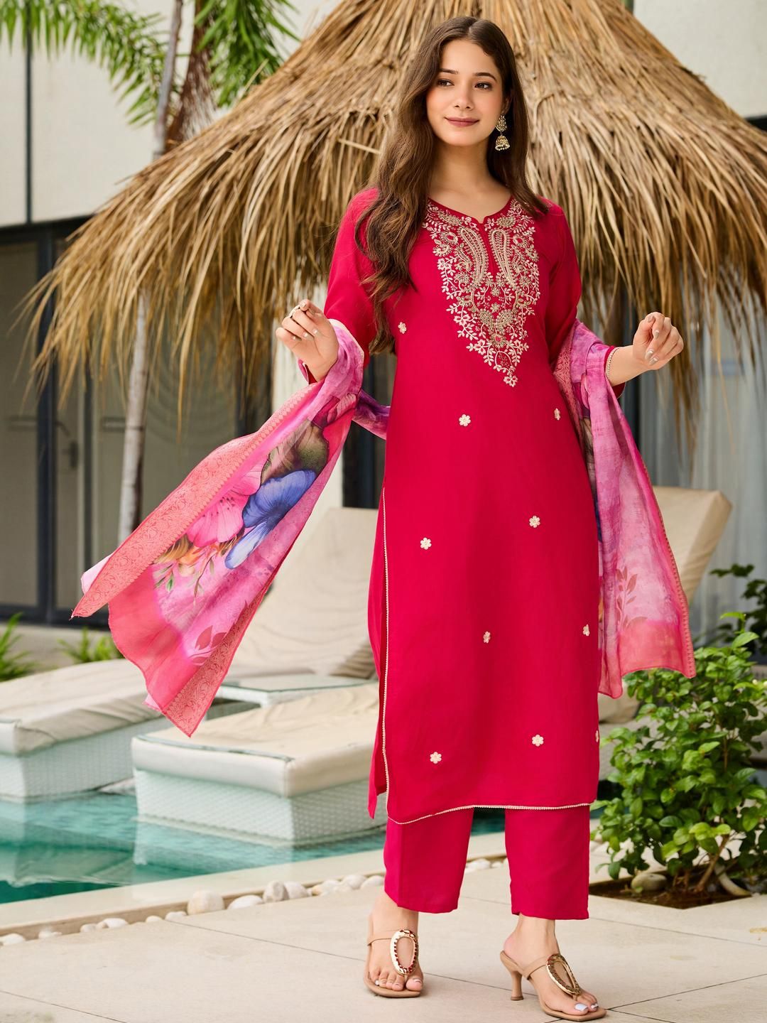 Buy this stylish CaniBani Women Pink Embroidered Chanderi Silk Kurta & Trousers With Dupatta at Marincart Nepal. This product offers great quality and value. Perfect for those looking for the latest trends in fashion. Get yours now at unbeatable prices.
