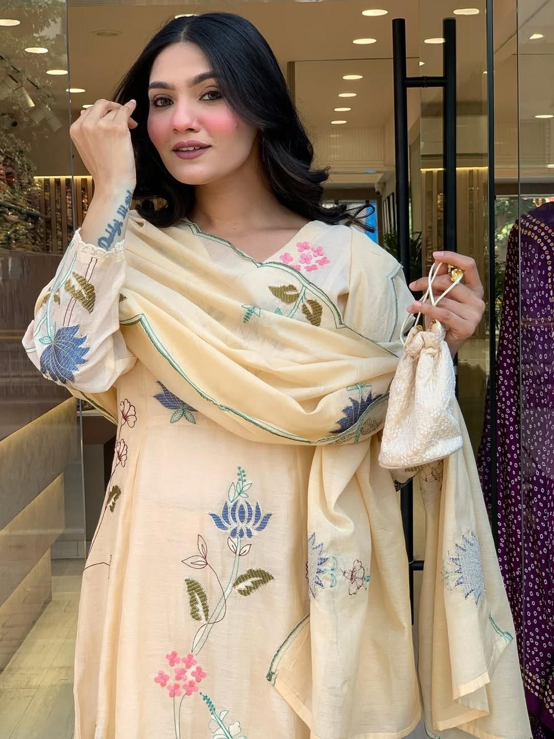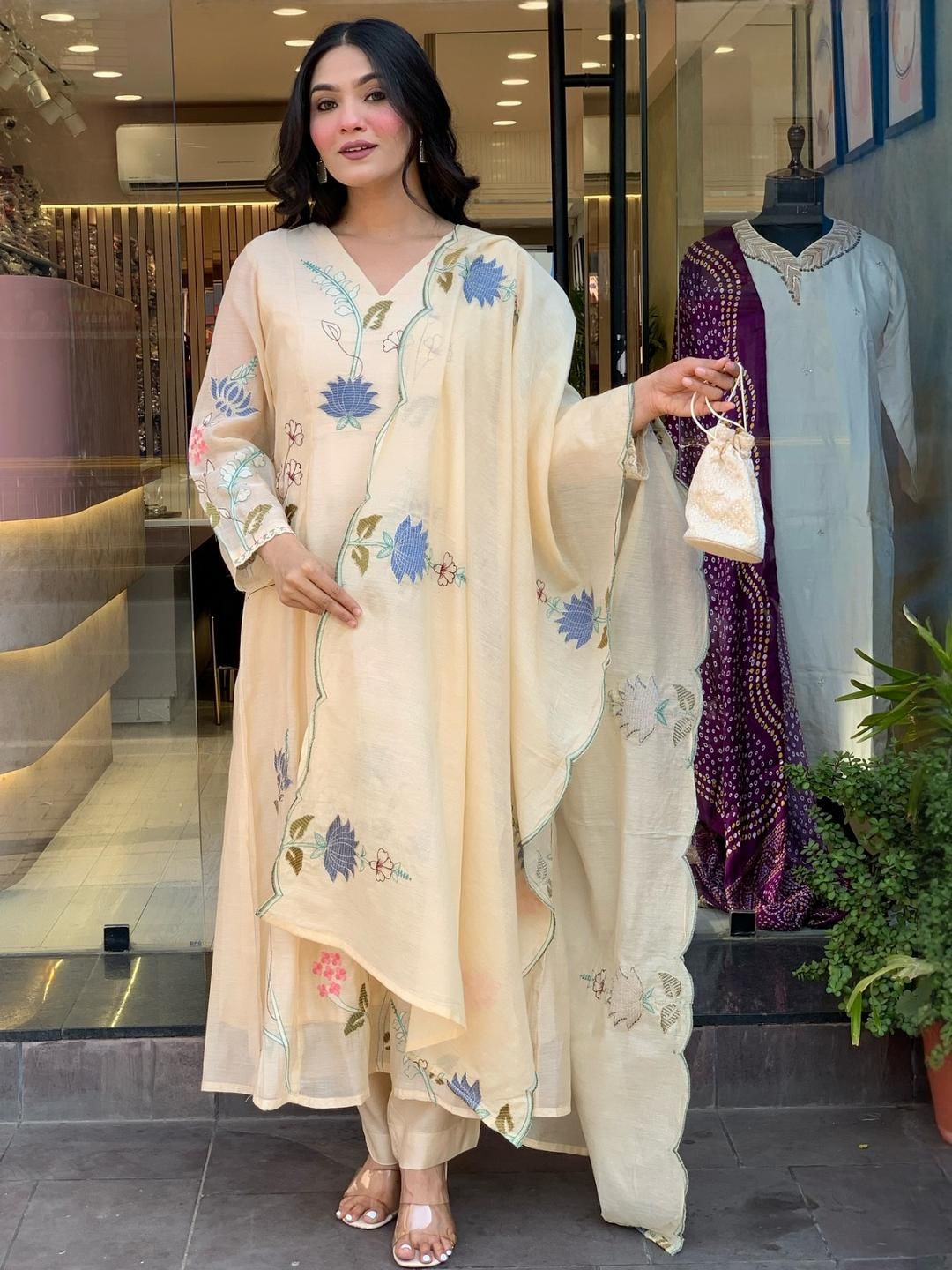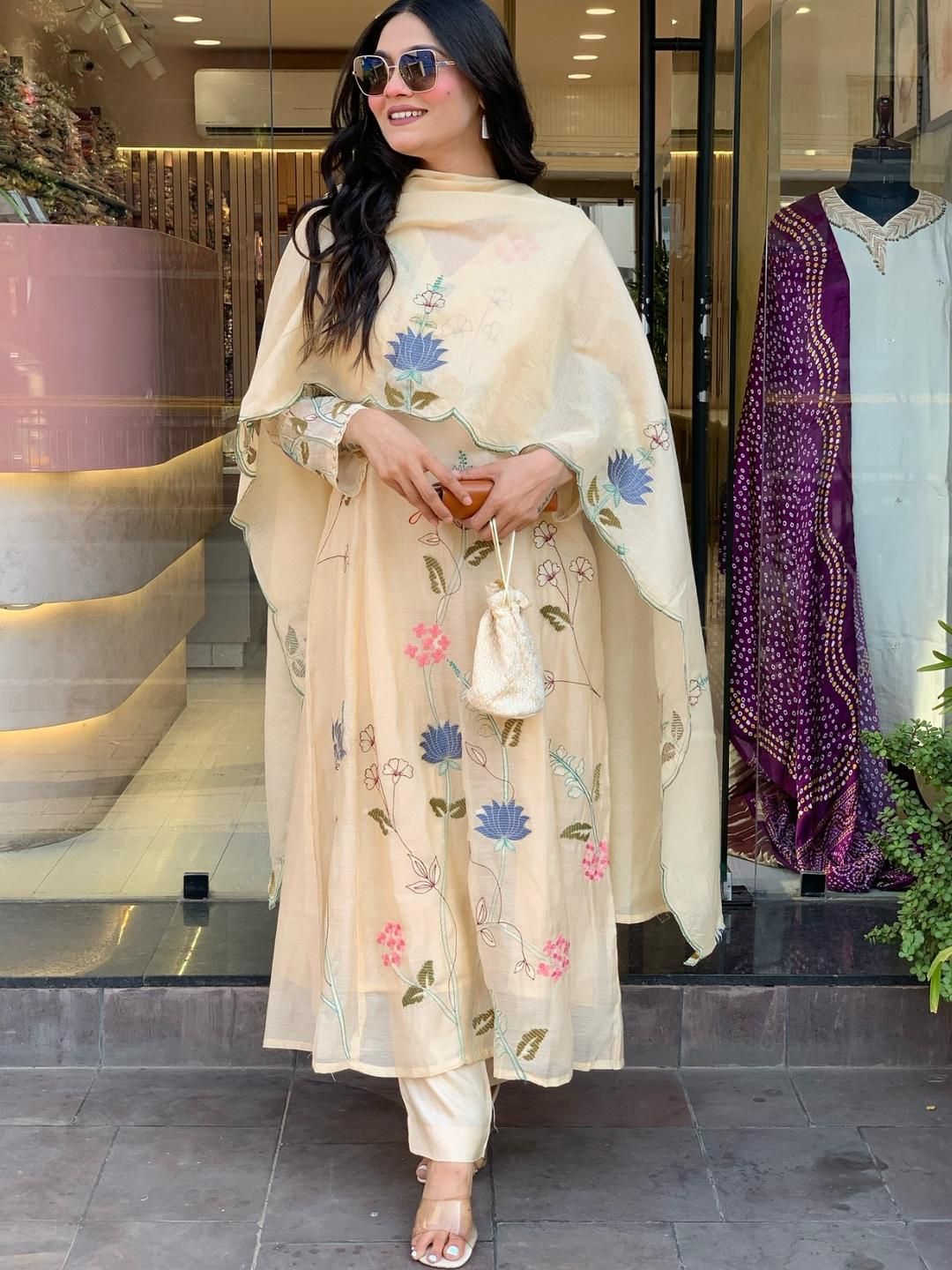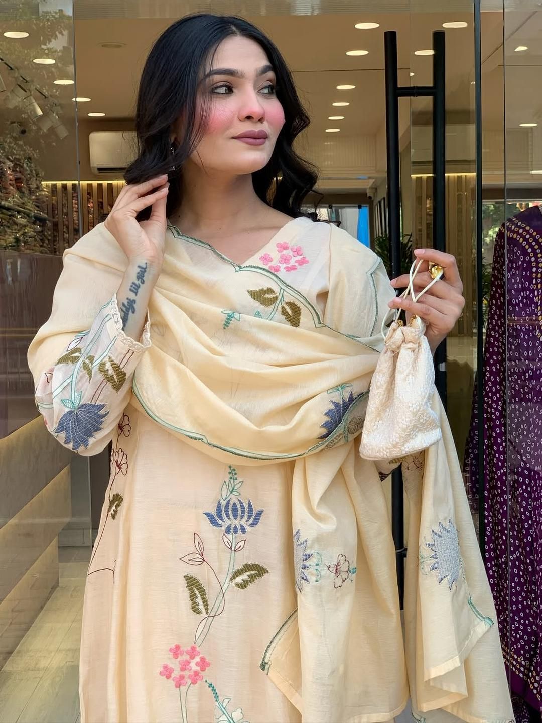 CaniBani Women Pure Cotton Embroidered Kurta Sets