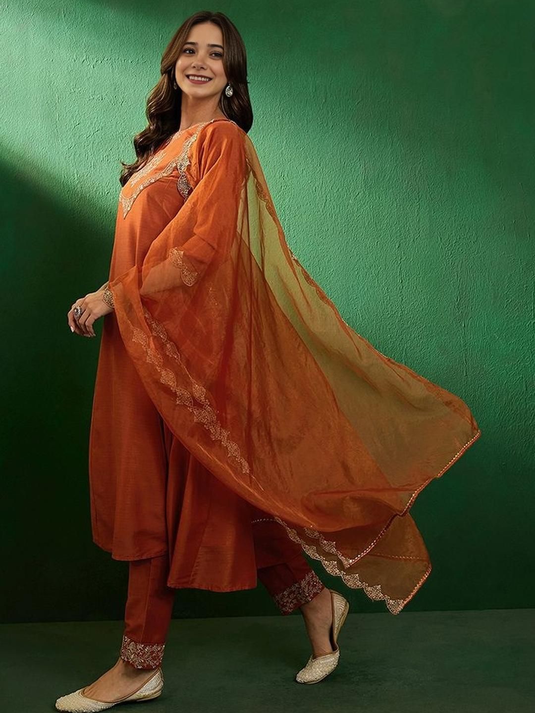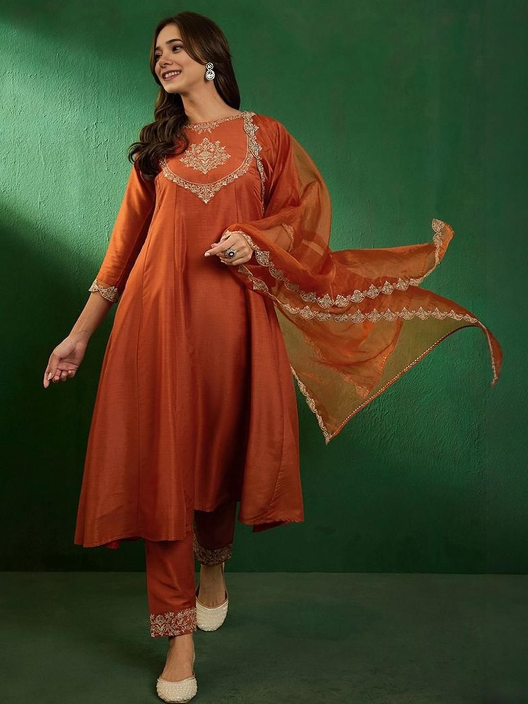 CaniBani Women Silk Blend Embroidered Kurta Sets